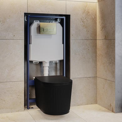 Comes complete with a wall-mounted frame with cistern and a pneumatic brushed bronze flush plate, simplifying installation for a seamless setup.