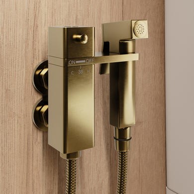 Complete Kit Included: Supplied with matching hose and bracket, all finished in brushed brass to coordinate with modern bathroom aesthetics.