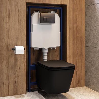Paired with a sleek Elira Pneumatic Matt Black Flush Plate and dual flush cistern that conserves water while elevating your bathroom’s modern look.