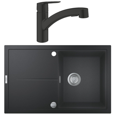 Complete sink & tap solution – Includes a stylish matt black composite sink and matching pull-out mixer tap in one set for a cohesive, modern kitchen upgrade