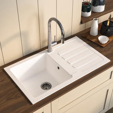 Timeless, easy-to-match design — the classic white gloss ceramic finish gives a clean, bright look that pairs beautifully with traditional and modern kitchens alike, making it a flexible choice when refreshing your home style.