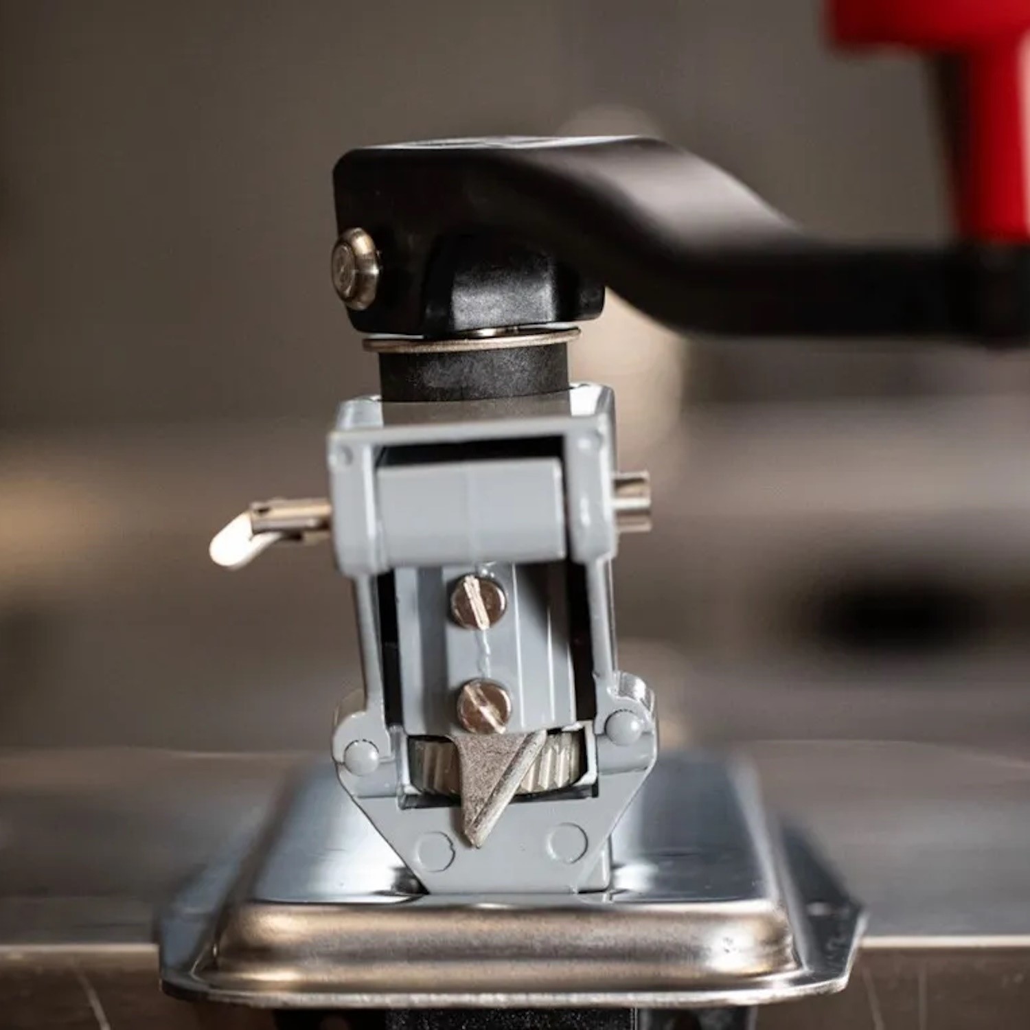 With an ergonomic handle, it provides a comfortable grip that reduces hand strain, allowing for quick and efficient operation, allowing staff to maintain speed and safety during even the busiest service periods. The R25 model is adaptable for various can sizes, making it versatile enough to handle both small and large cans, perfect for those who require a heavy-duty tool that can handle all their kitchen needs. The blade of a Bonzer can opener isn't sharp - therefore, it produces a clean, safe cut in which you can run your finger around without fear of slicing. This has the added benefit of releasing no metal swarf which could end up in the food.