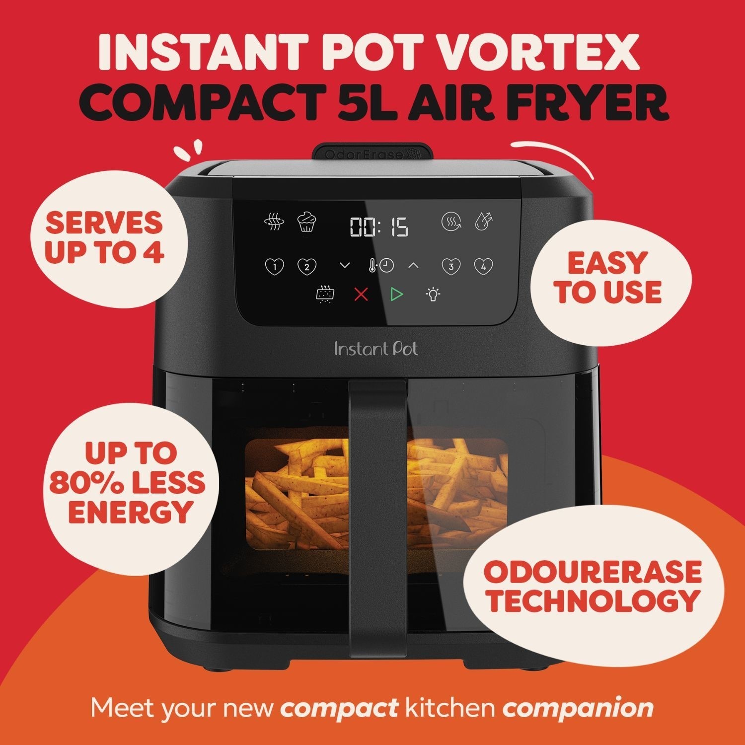 The Instant Pot 5L 4-in-1 Air Fryer is a compact, versatile appliance designed for busy UK kitchens. Combining air fry, bake, reheat, and dehydrate functions in one easy-to-use machine, it delivers fast, energy-efficient cooking with perfectly crisp results. Ideal for small households or countertop kitchens, it’s the smart way to cook delicious meals without taking up too much space.
