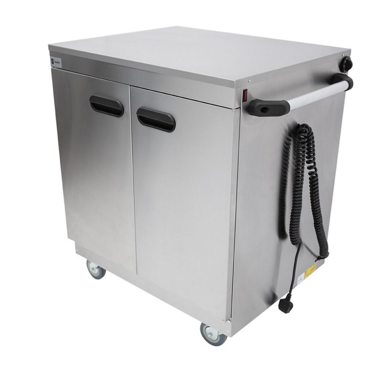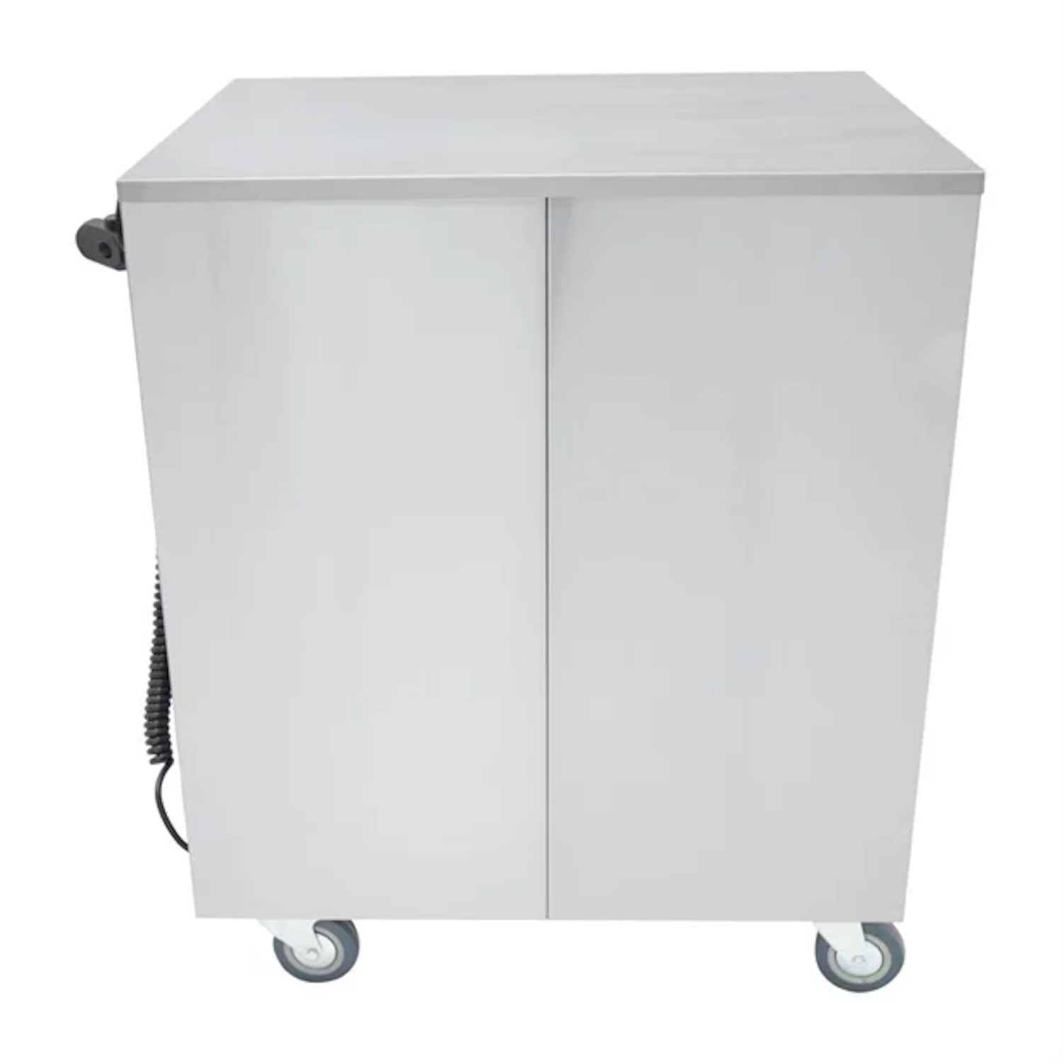 As its made of double skinned steel this helps to maximise thermal efficiency, making sure each meal is served perfectly hot as intended. This cupboard can be used in a variety of commercial settings such as hospitality venues, restaurants, residential homes or any venue that requires easy transport of hot foods. The unit has a large capacity that can hold up to 40 plated meals at any one time or 270 x 25cm plates when used as a plate warmer and features 4 x castors with two brakes as standard. The handle makes it easy to manoeuvre and transport from room to room.