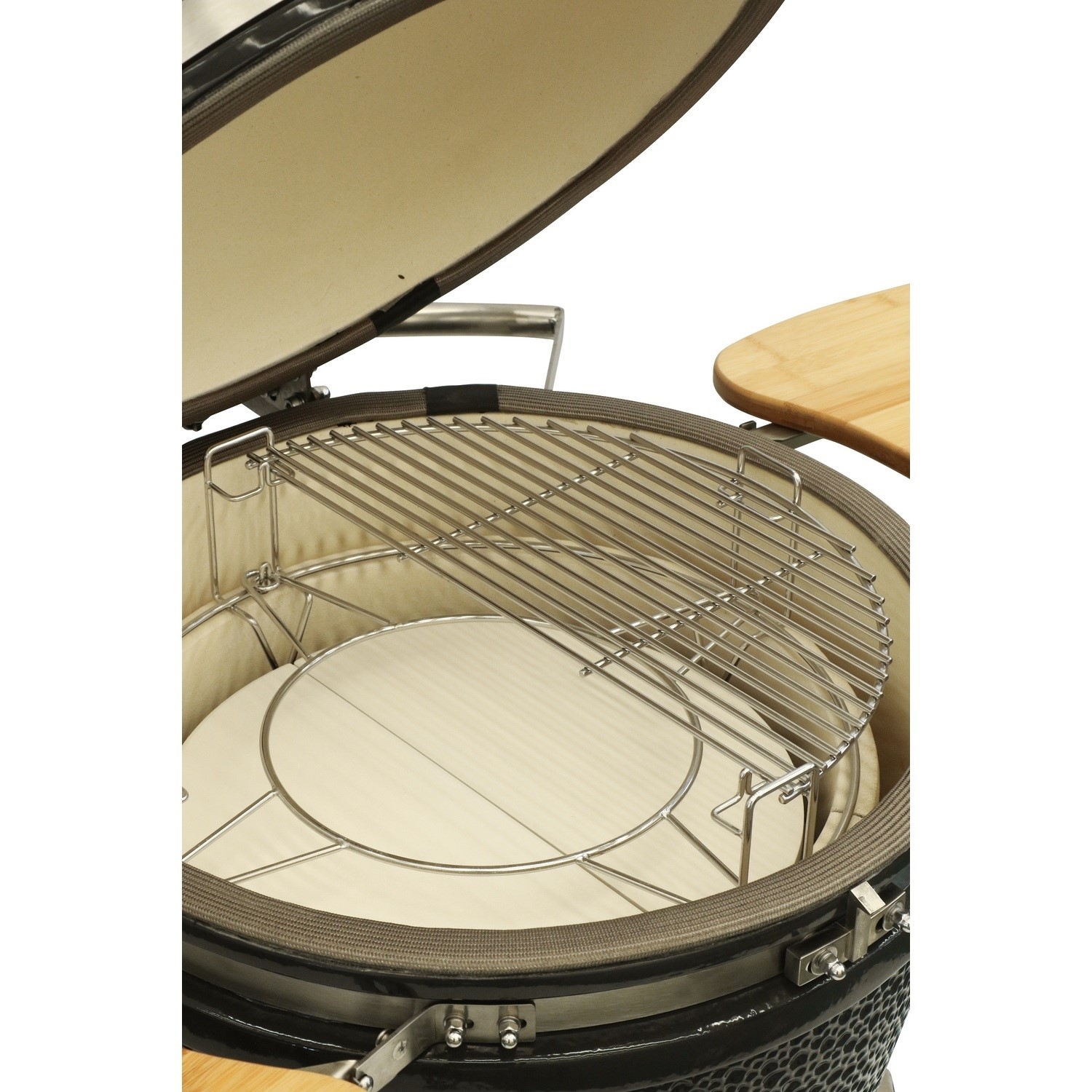 The Boss Grill Heat Deflector is designed to unlock true multi-zone cooking in your kamado barbecue. Featuring two half-moon ceramic surfaces, it allows you to partially block direct heat, creating both direct and indirect cooking zones within the same grill. This flexible design gives you complete control over heat distribution — position both halves for full indirect cooking, or use a single deflector to create dual heat zones for searing on one side and slow cooking on the other. Ideal for low and slow smoking, roasting, baking, or gentle finishing, the Boss Grill Heat Deflector helps you achieve consistent temperatures while maintaining that authentic charcoal flavour. Mix and match different cooking surfaces to suit your style and menu. If you’re looking to elevate your kamado cooking with greater precision and versatility, the Boss Grill Heat Deflector is an essential addition to your setup.