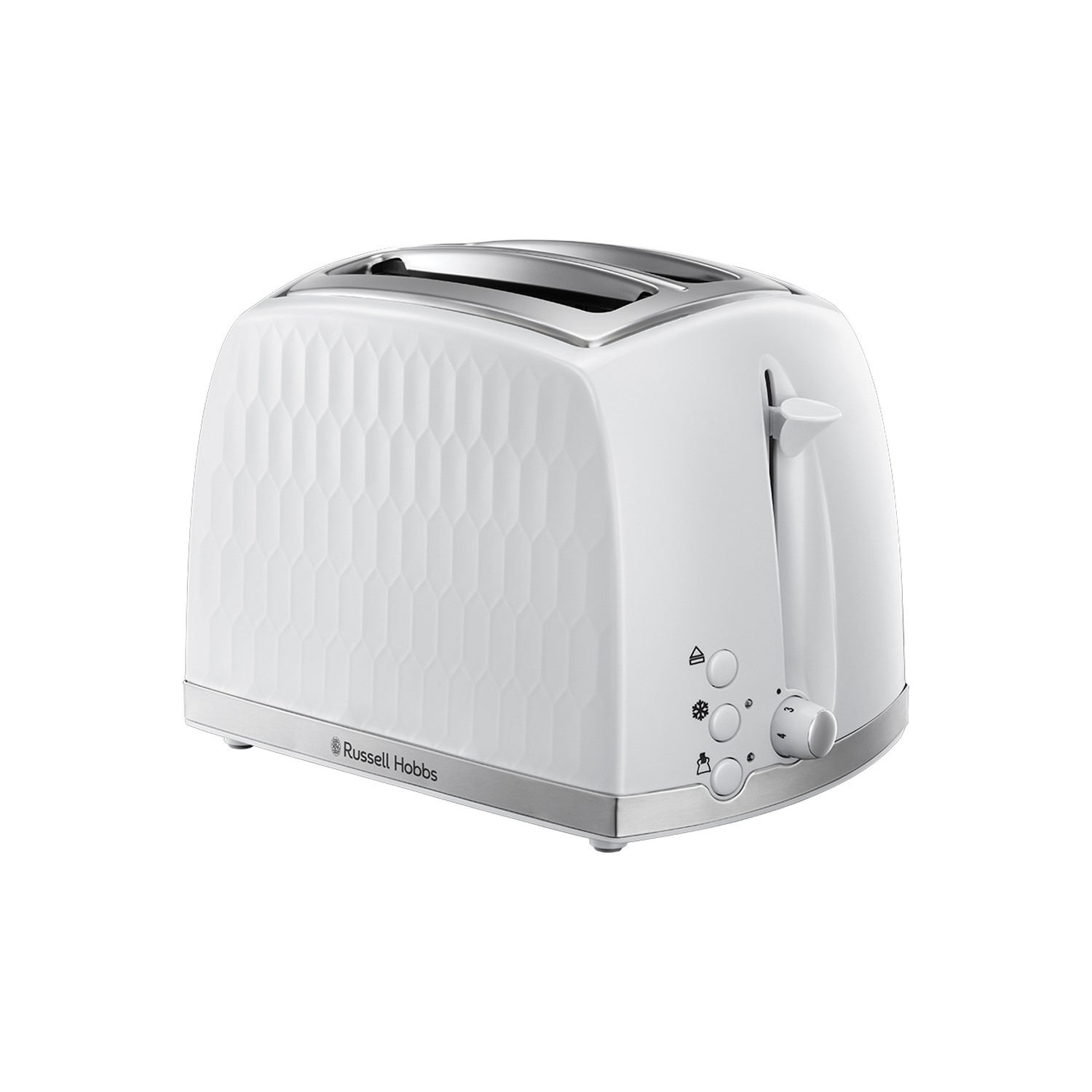 Keep your kitchen on-trend with the Honeycomb 2 Slice Toaster in whitewith a Textured Design. Letting you give your kitchen a makeover without blowing your budget, this toaster not only brings style to your countertop but it also comes convenient features too. Its High Lift Feature lets you lift your toast up to your fingertips.