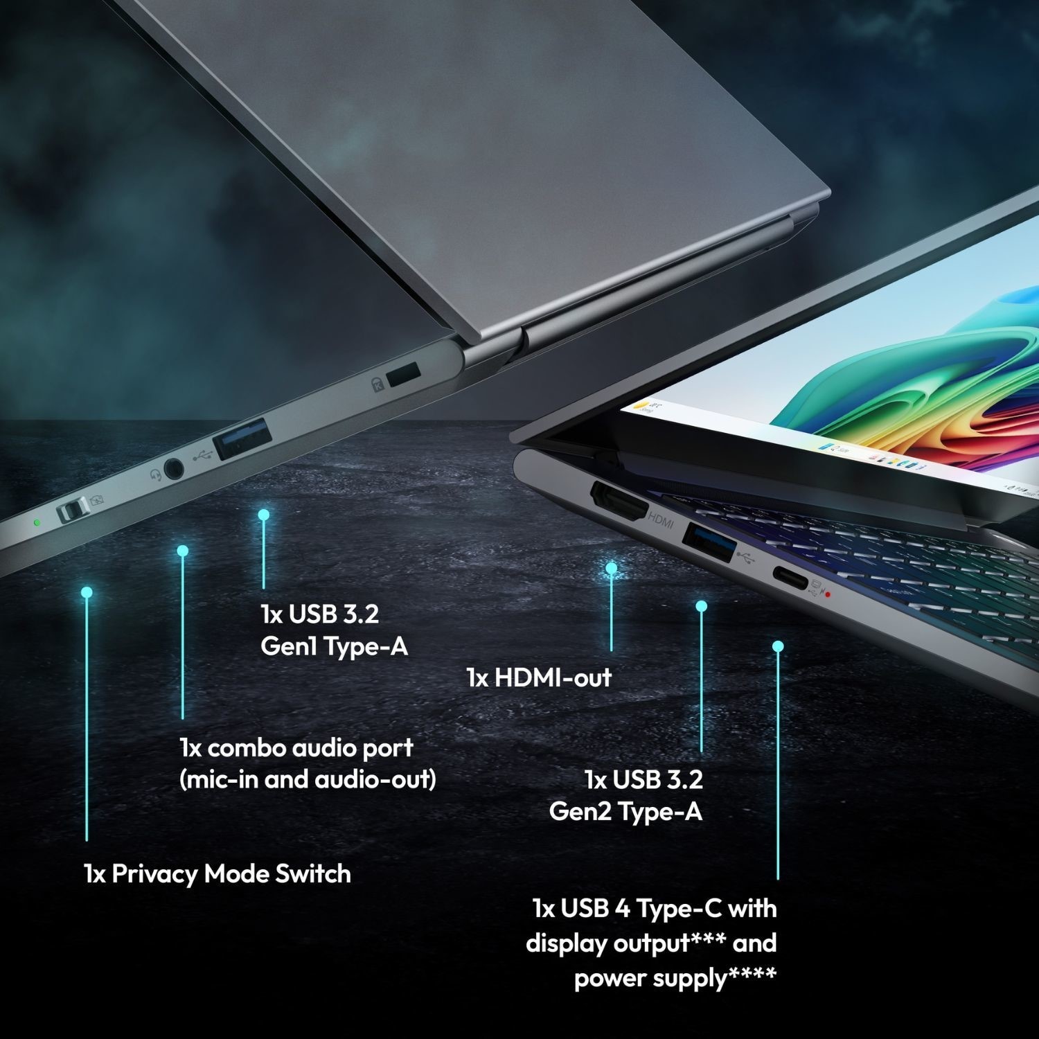 The 35.56 cm (14") 2.8K display with 100% sRGB, 120 Hz in a 16:10 aspect ratio and 400 nit's brightness sets new standards in image quality. With a 1 TB PCIe SSD and 32GB LPDDR5X RAM, you'll enjoy lightning-fast load times and smooth performance, even on demanding tasks.