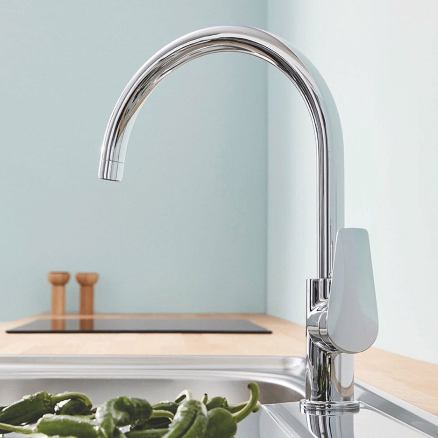 The lustrous but hard-wearing Grohe StarLight chrome finish means this kitchen tap will keep its dazzling good looks through years of use.