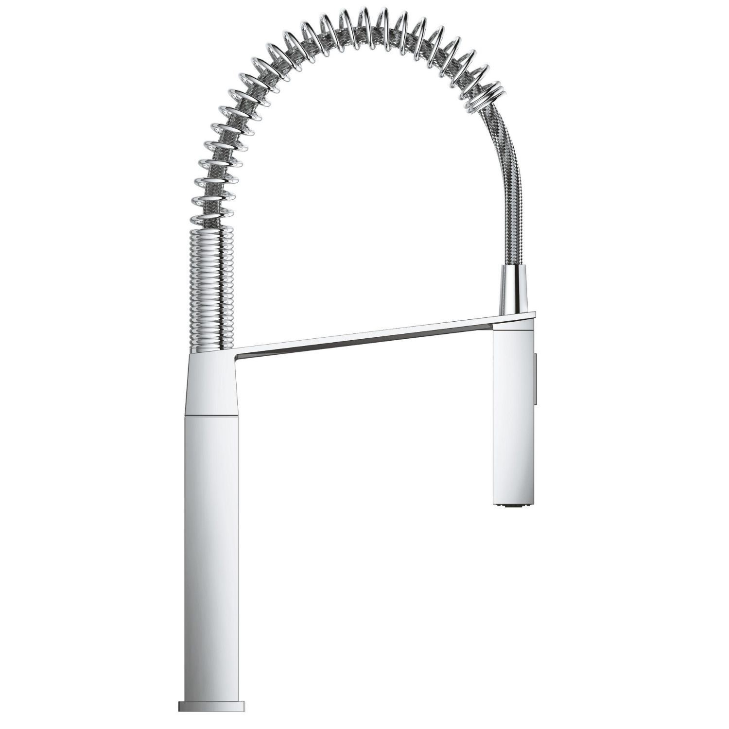 Constructed from durable brass and finished in polished chrome, this mixer tap benefits from GROHE’s galvanic coating, delivering long-lasting shine and durability. The professional spray head provides flexible operation for rinsing, cleaning, and food preparation, while the single lever handle allows precise control of water temperature and flow.