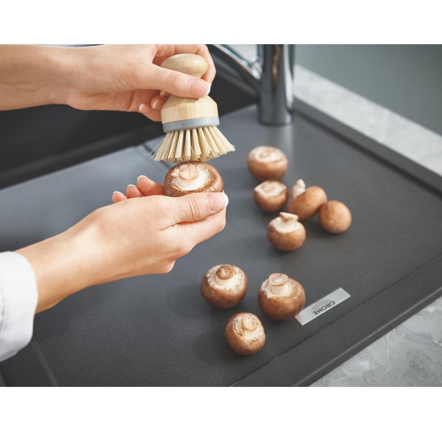 The GROHE K400 Composite Sink features a single rectangular bowl with a reversible drainer, offering practical and flexible solutions for modern kitchens. The deep main bowl accommodates large pots, pans, and everyday kitchen tasks, while the reversible drainer allows installation on either side to suit your kitchen layout.