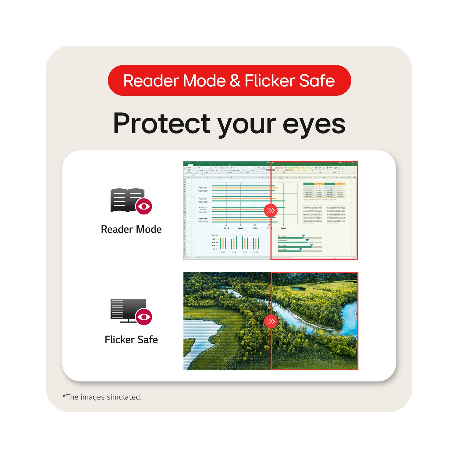 Watch your monitor for longer periods of time. Reader Mode provides optimal conditions for reading by reducing blue light.