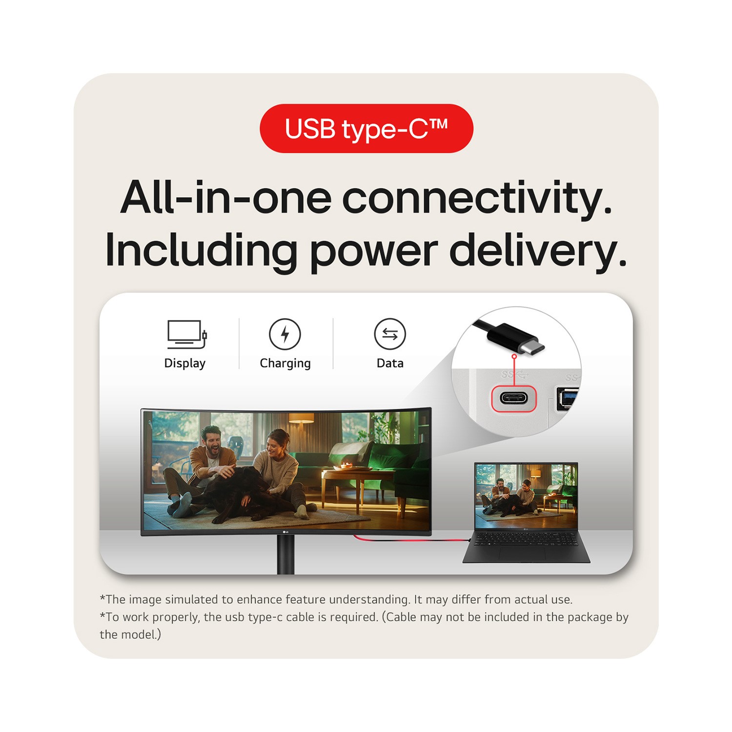 Connect with confidence. Along with USB Type C , this UltraWide monitor has two HDMI ports, two USB ports, a DisplayPort and headphone jack.