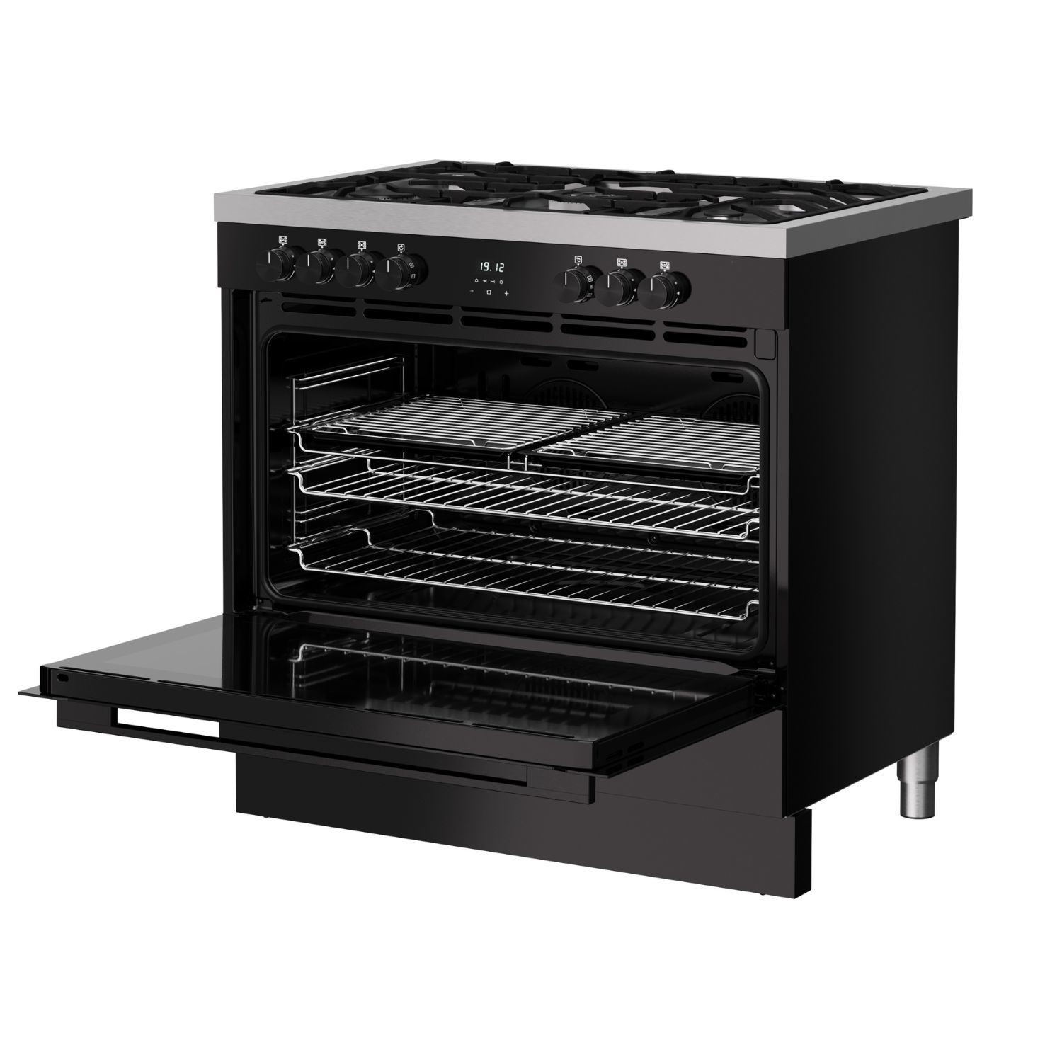 This 90cm single cavity dual fuel range cooker is part of the Belling Vision collection. A suite of brilliantly practical products that blend premium design with affordable prices. With a market-leading 133L oven with 2 fans and a 5 burner gas hob, there’s plenty of room for batch-cooked dishes, weeknight favourites, or one generous centrepiece. Full of trusted features you would expect from Belling including: A large full width grill & double grill pan, perfect for indoor BBQs, rounds of cheese on toast or a full English breakfast. Premium finishes including the sturdy metal dials and handles, engineered to stand the test of time and look great doing it.