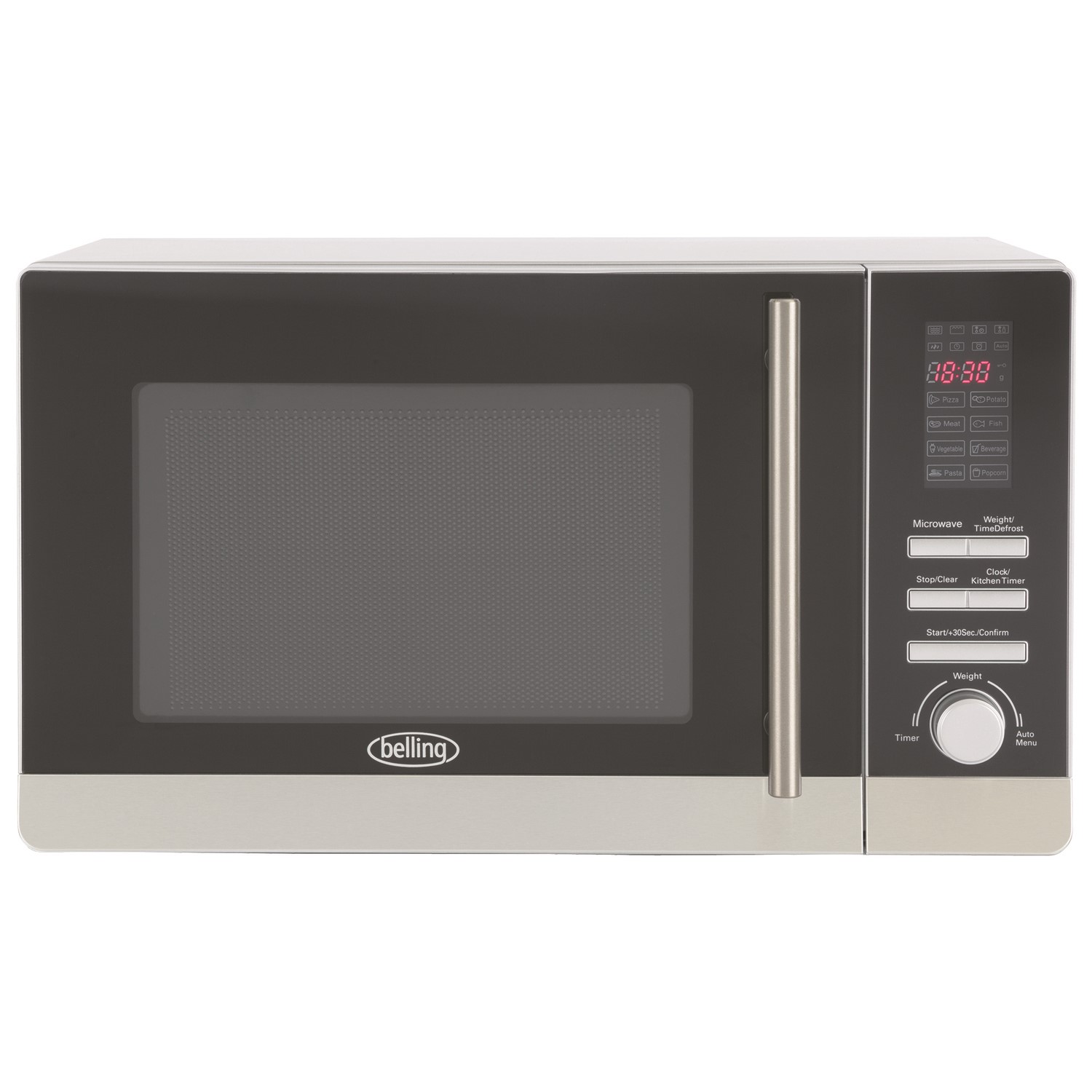 This 20L stainless steel design microwave from Belling is ideal for cooking delicious and convenient food. Useful features include auto defrost, child lock, 5 power levels and easy to use push buttons.