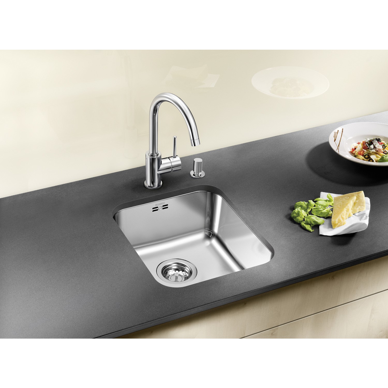 The single-bowl design of the Blanco Supra 340-U provides a spacious and versatile workspace. Its generous size allows you to comfortably handle large pots, pans, and cookware, making it an ideal choice for cooking enthusiasts. The deep bowl accommodates a wide range of tasks, from food preparation to dishwashing. This sink boasts a sleek and contemporary design that adds a touch of sophistication to your kitchen. The undermount installation style ensures a seamless, clean look by mounting beneath your countertop. This not only enhances the aesthetics of your kitchen but also simplifies maintenance, as there are no exposed edges to trap dirt or debris.