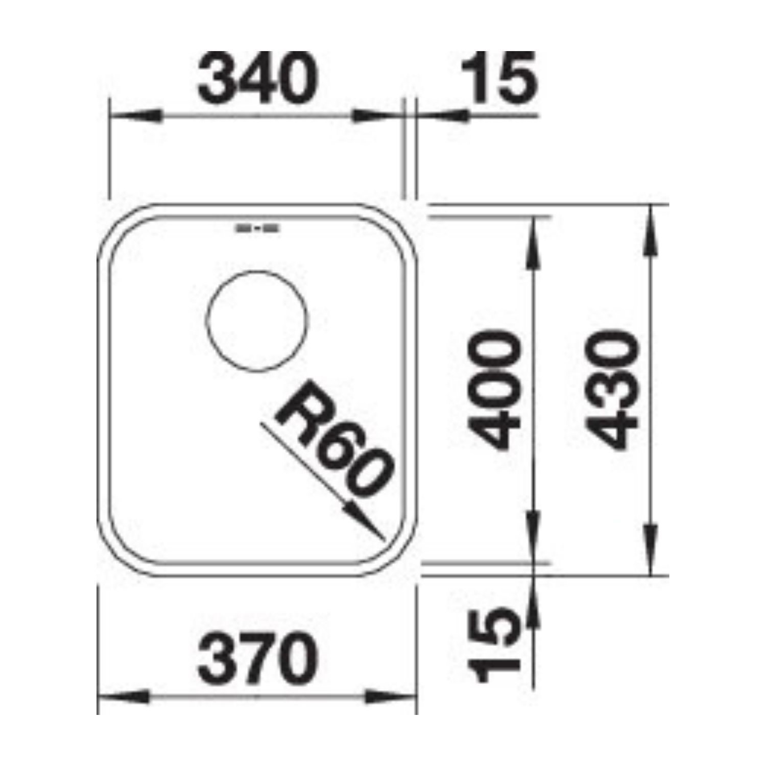 - Sink dimensions: W370 x H184 x D430 mm