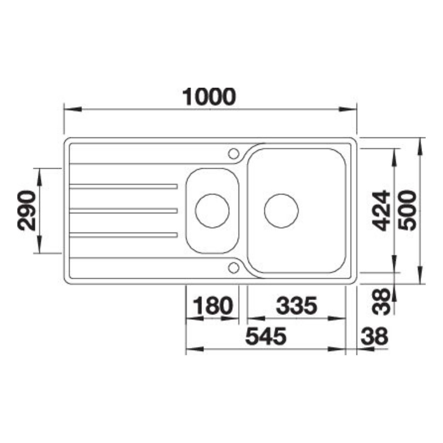- Sink dimensions: W1000 x H214 x D500 mm