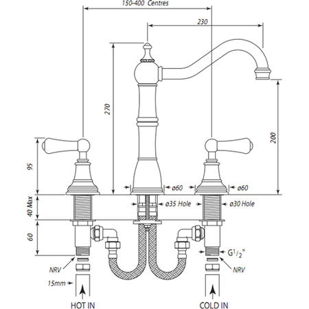 - Country Collection Alsace Three Hole Mixer Tap