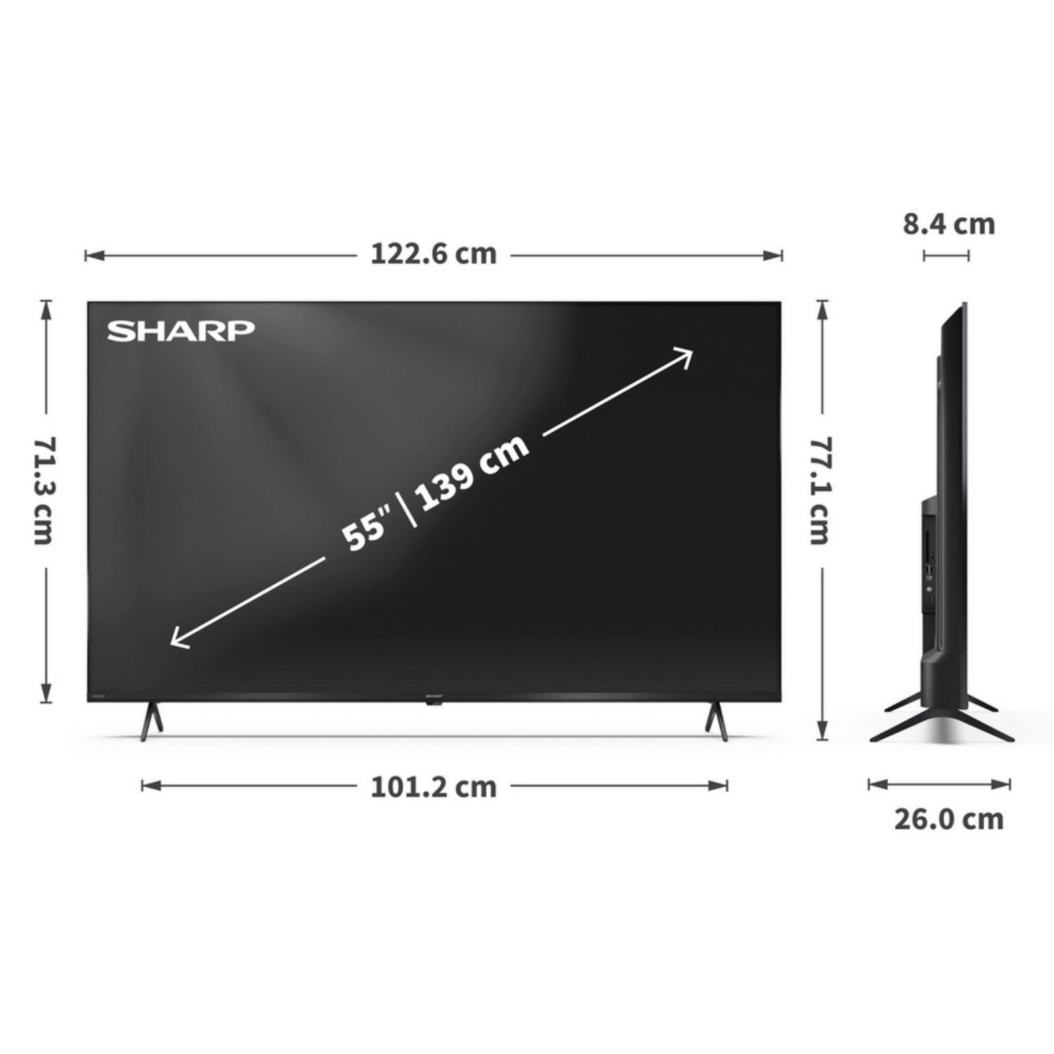 A sleek black finish and minimalist styling make this TV a perfect fit for contemporary living spaces.