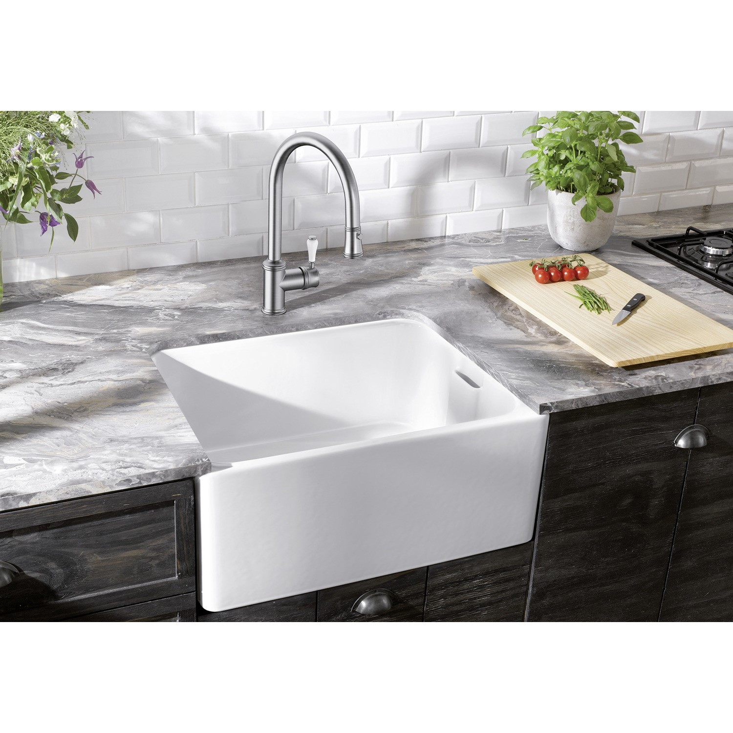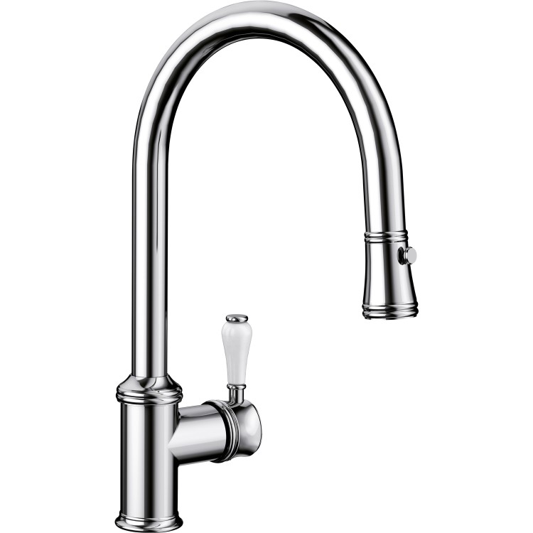 The Blanco Heritage-Style Single Lever Mixer Tap blends classic design with modern functionality, making it a standout feature for any kitchen. Its high-arched spout provides elegant visual appeal and added practicality for filling larger pots and containers. Crafted from premium brass with a polished chrome galvanic finish, this tap offers both durability and luxury. The single lever design ensures precise control over water flow and temperature, while ceramic disc technology delivers smooth, drip-free performance. With a swivel spout and integrated pull-out spray, it brings convenience and flexibility to everyday kitchen tasks, perfectly suited to high-pressure systems.
