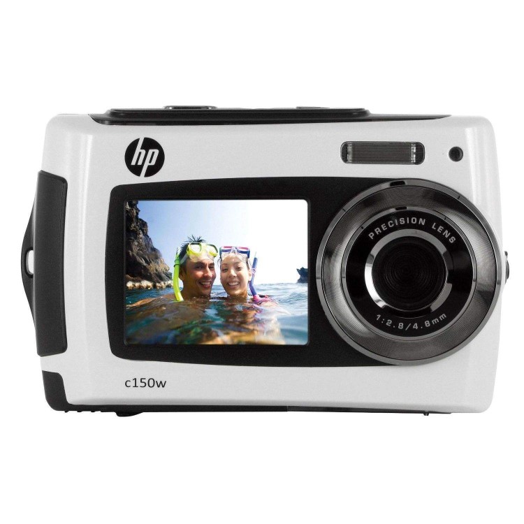 The HP c150w is a great waterproof camera for your active life style. Capture remarkable underwater memories of your familys snorkling trip or great pictures of the snowy ski vacation without fear of ruining your camera . Use the camera for vivid underwater and on-the-beach pictures or any other outdoor activity, rain or shine. The HP c150w features dual LCD screens. Use the front facing LCD to compose and capture worry free self-portraits. Keep the camera in your travel bag so you are ready to quickly and easily take pictures and video in rain or shine.