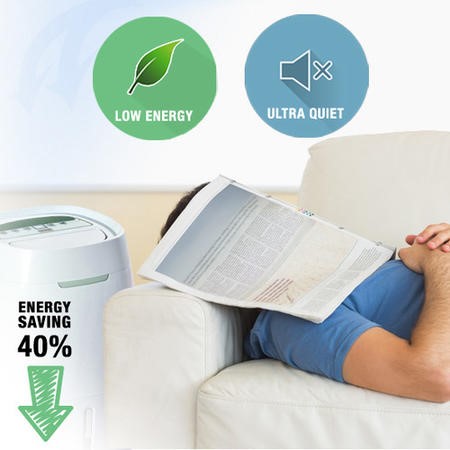This efficient dehumidifier is perfect for using at night when sleeping thanks to its ultra-low noise level. It's engineered with some very clever technology that saves you 40% of the running costs compared with standard dehumidifiers. There's also a timer function that can be set to automatically switch on/off at a convenient time - so you can have it run while you're sleeping, at work, or at an off peak electricity period to futher reduce operating costs.