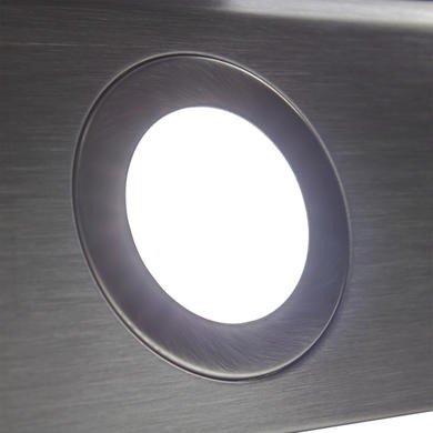 The simple push button controls provide quick and easy operation of the fan speed and lighting settings. The more steam and odour in the kitchen the higher fan speed you will need. The two LED lights are designed to illuminate your cooking space with pure white light. The benefits to this hood having LED lighting means they will last longer and also use less electricity than the traditional incandescent light bulbs.