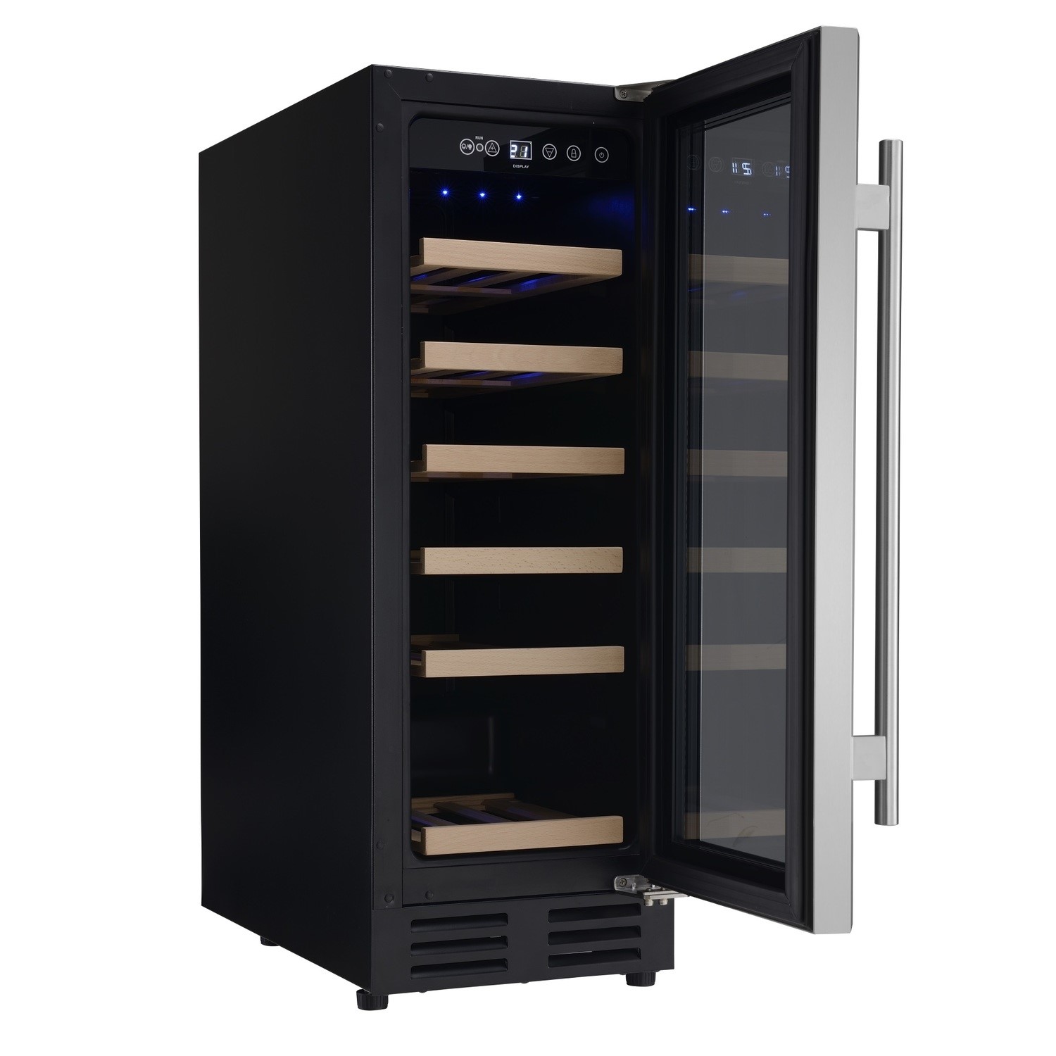 This premium wine cooler features solid wooden shelving, with 5 full shelves and 1 half shelf. The shelves easily slide out for you to take a closer look at the bottles you’re selecting.