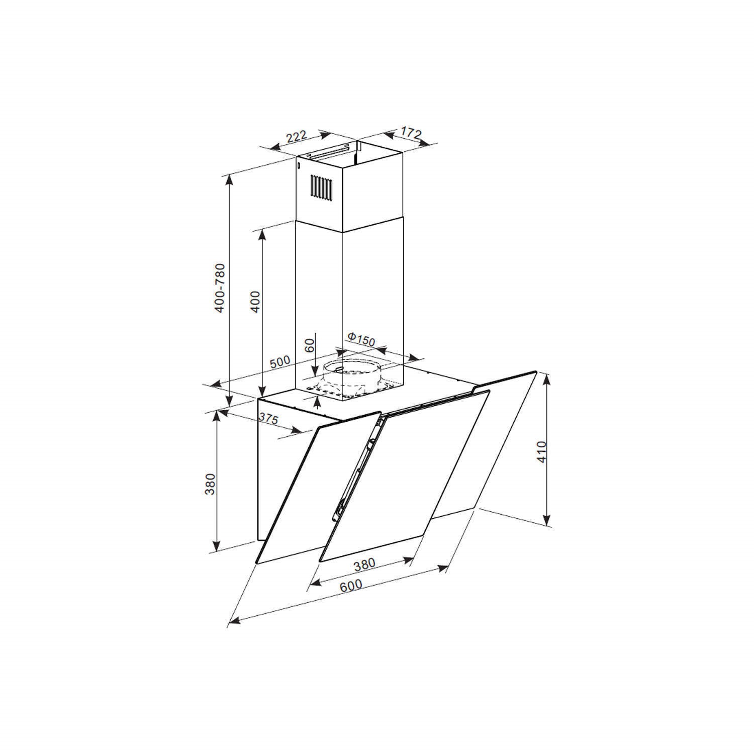 - 1 x Angled cooker hood
