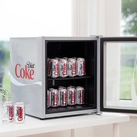 Featuring the Diet Coke logo on the stylish glass doors and on the side of the silver cabinet, this cool 48 litre mini fridge is ideal for bedrooms, living rooms or even the home office.