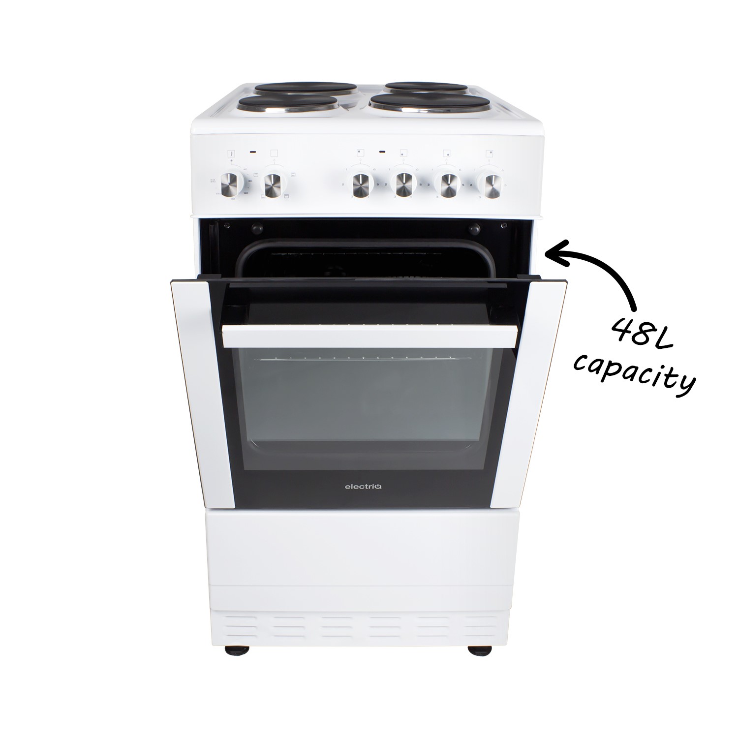 This electriQ single cooker will come in great for any kitchen with its durable and easy to use design. It has a 48L electric oven and a sealed plate hob with four zones, providing plenty of cooking space for smaller families and couples.