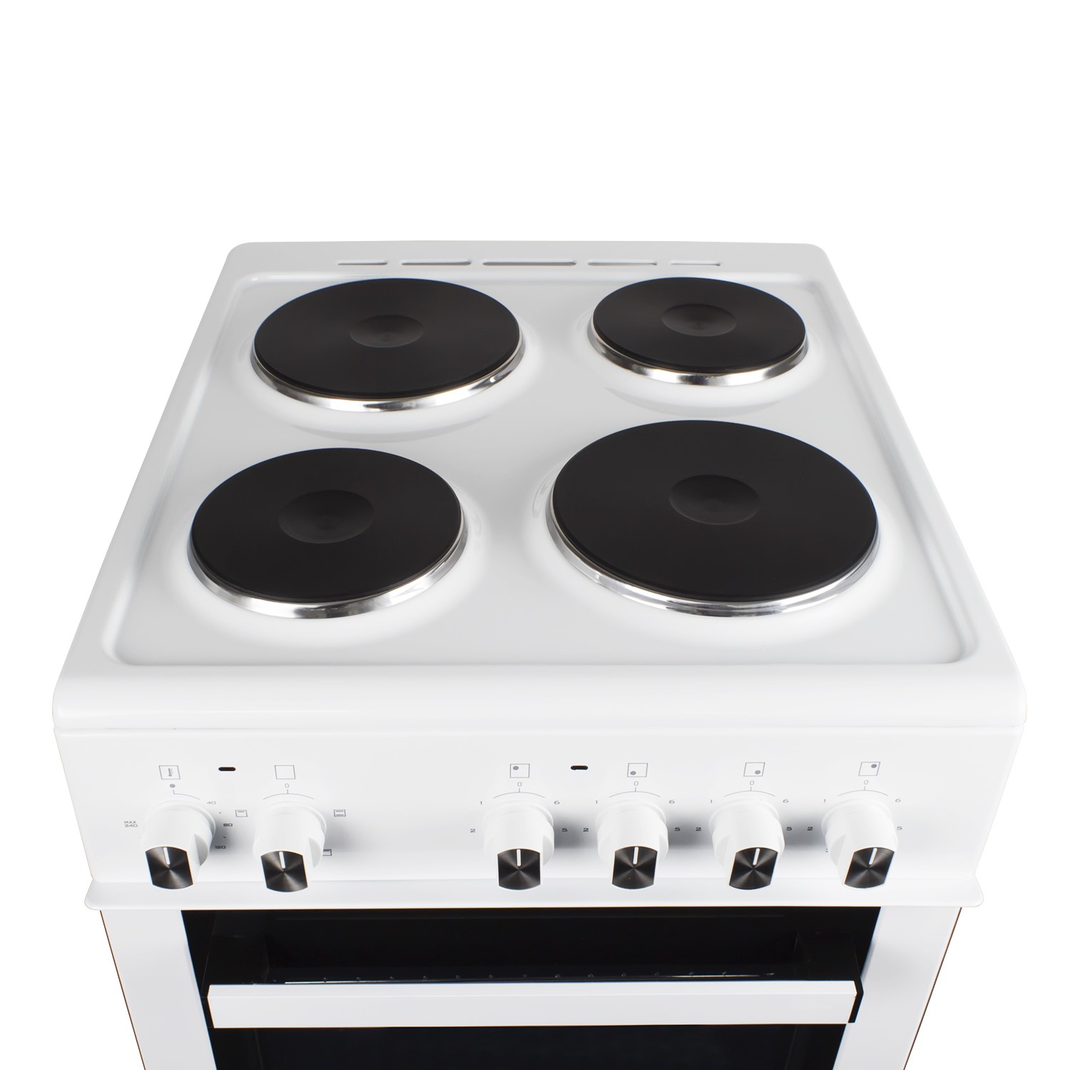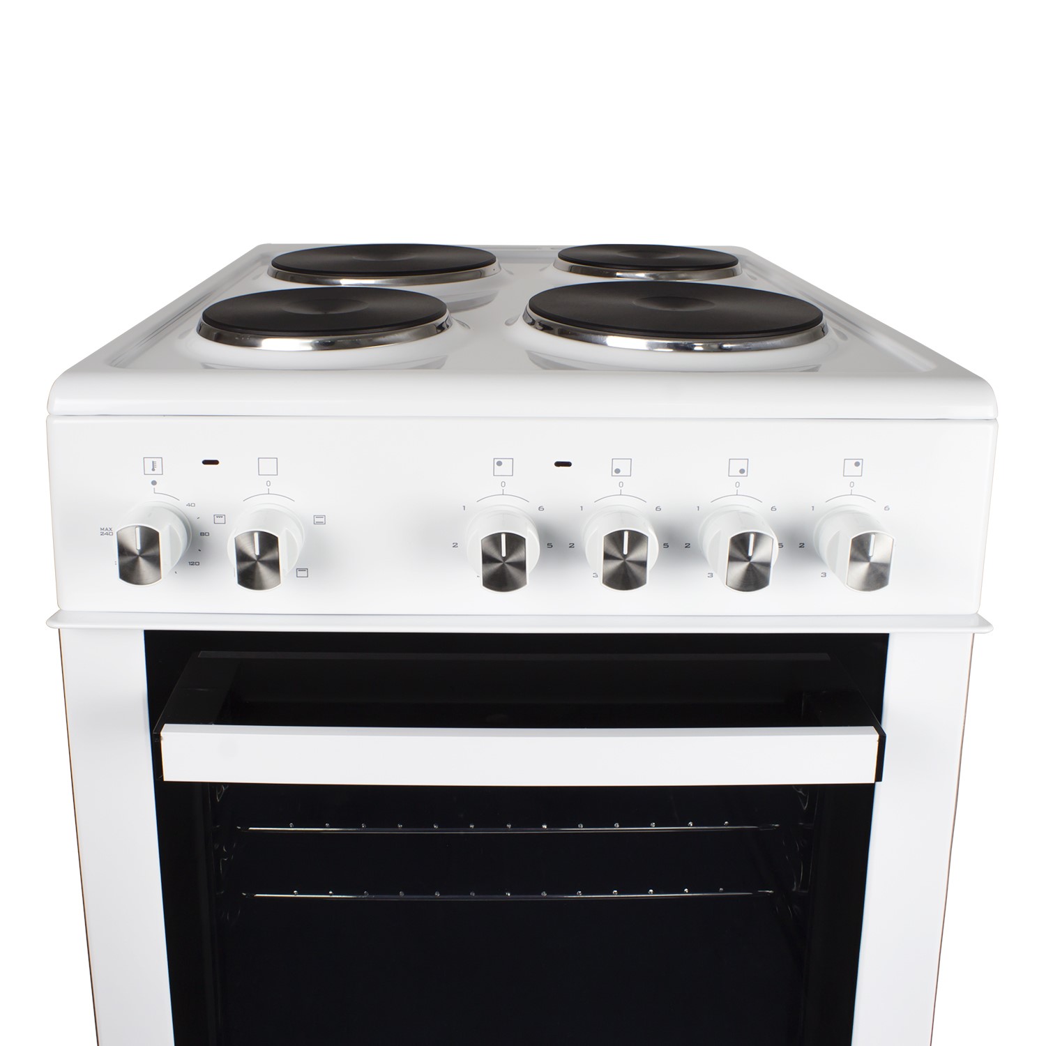 - Clean and simple design with easy to use, durable inox white capped knob controls