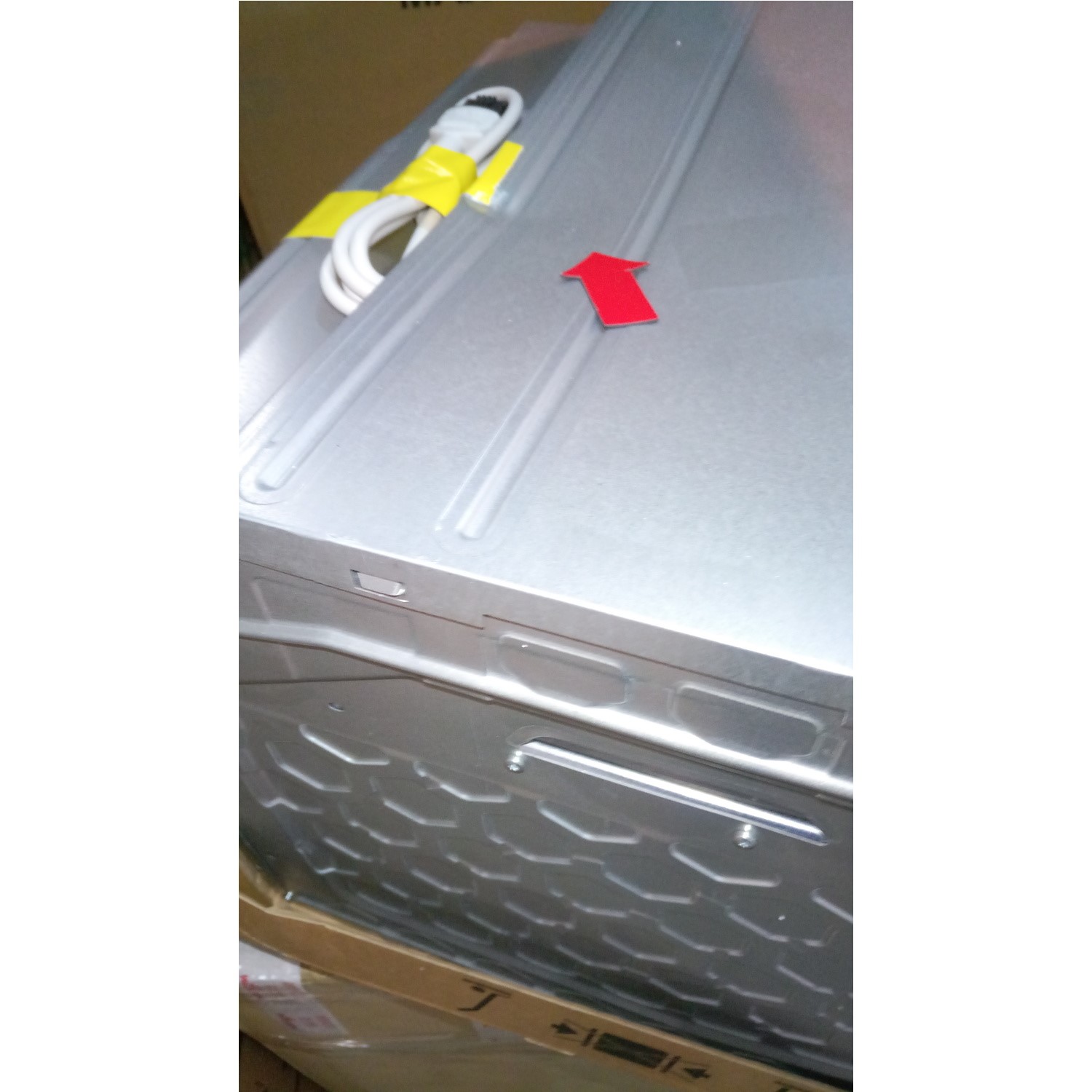 The casing of the microwave is dented on the top and rear. The control panel glass is scratched, and the right-hand side panes also scratched on the side. Please see images.