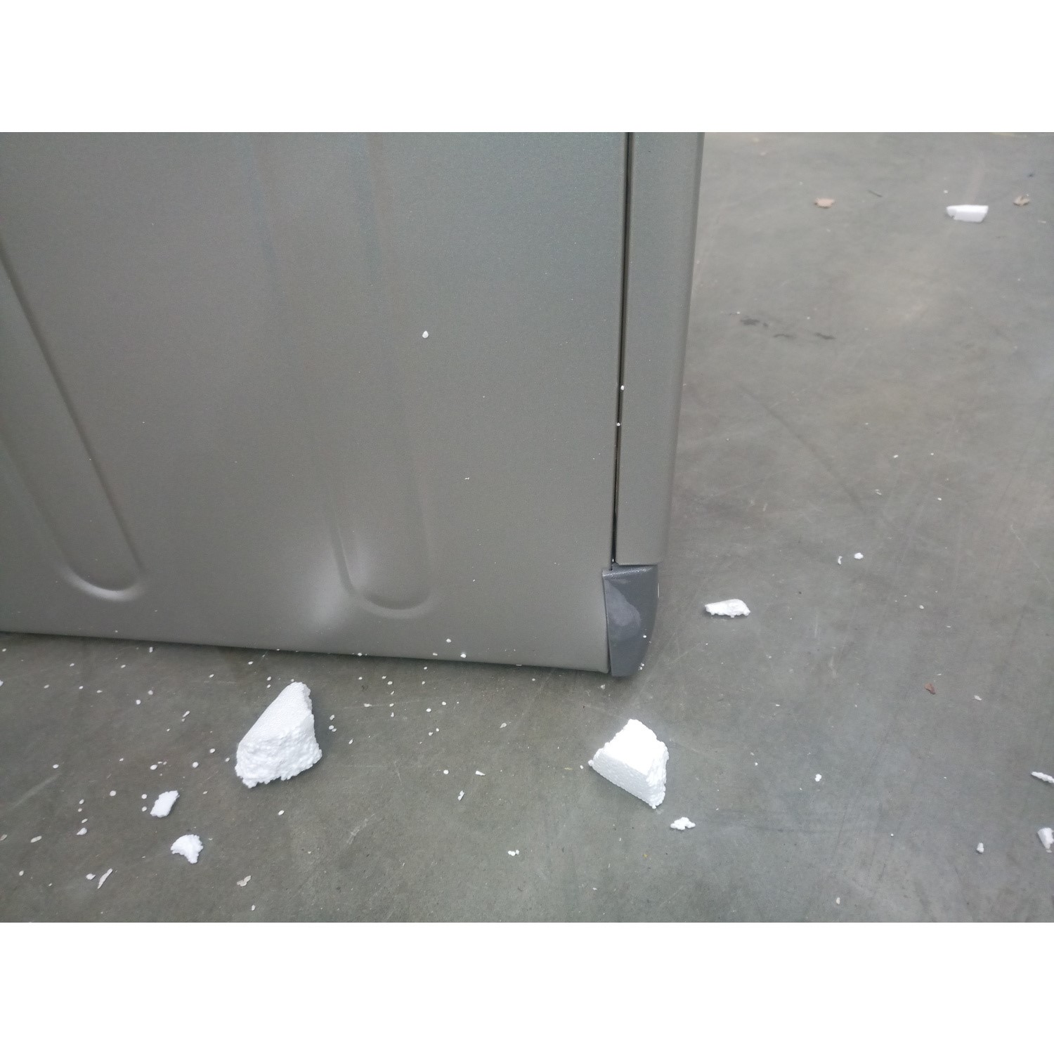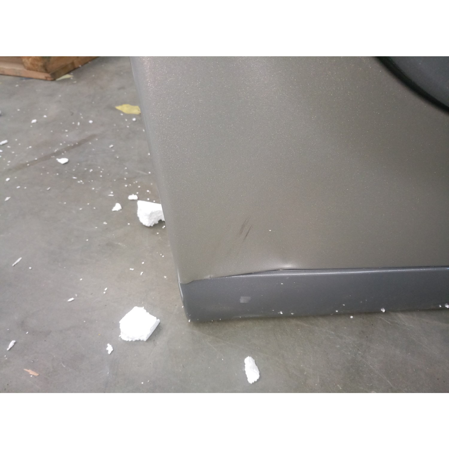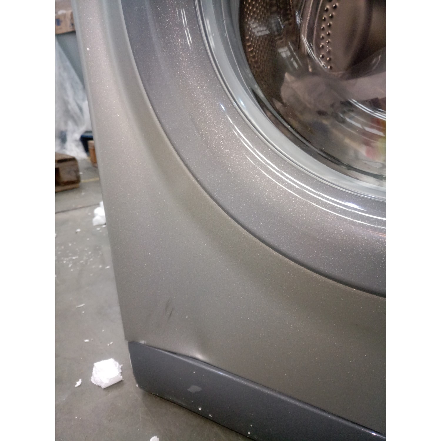 The front panel is slightly dented and the plinth on the washing machine is out of line.