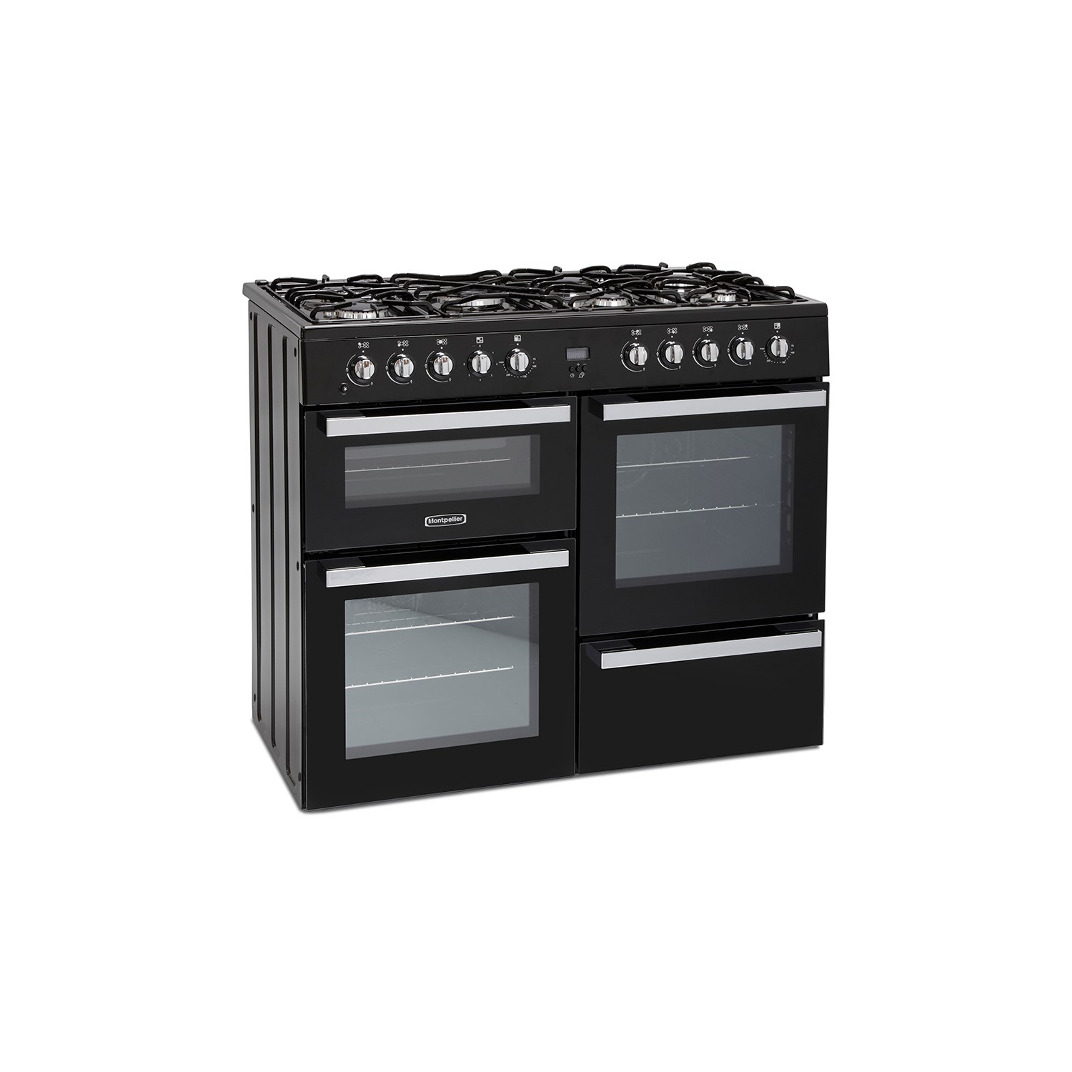 Our MDF100K 100cm dual fuel range cooker is beautifully modern and offers the cooking flexibility and control you would expect with todays technology, but it still retains the features that make a classic range cooker. With seven enamel gas burners including a wok burner and a double oven (1x fan oven and 1x conventional oven) and separate grill this range cooker is perfect for everyday use as well as for those times you need to cook for a large group.