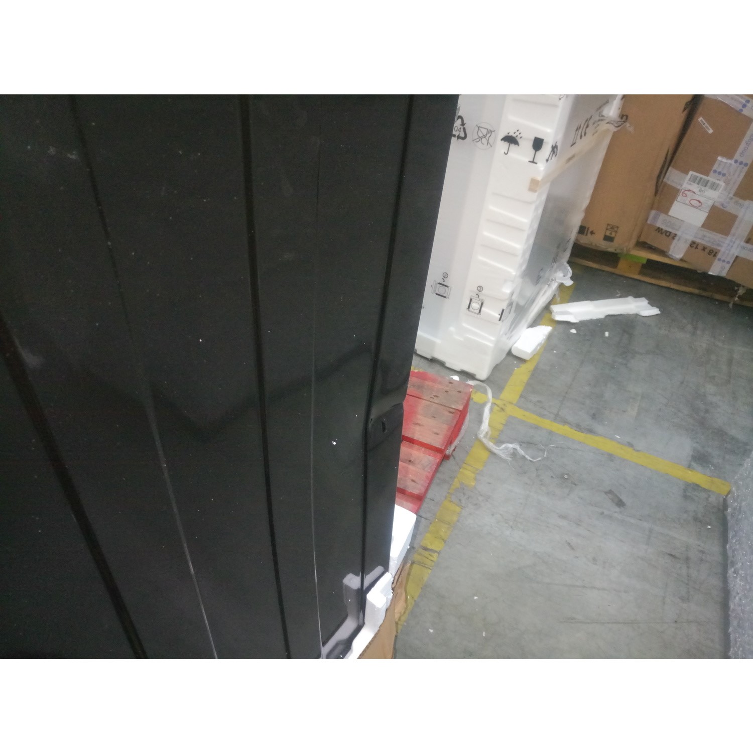 There are dents to the front and back of the right side of the panel.