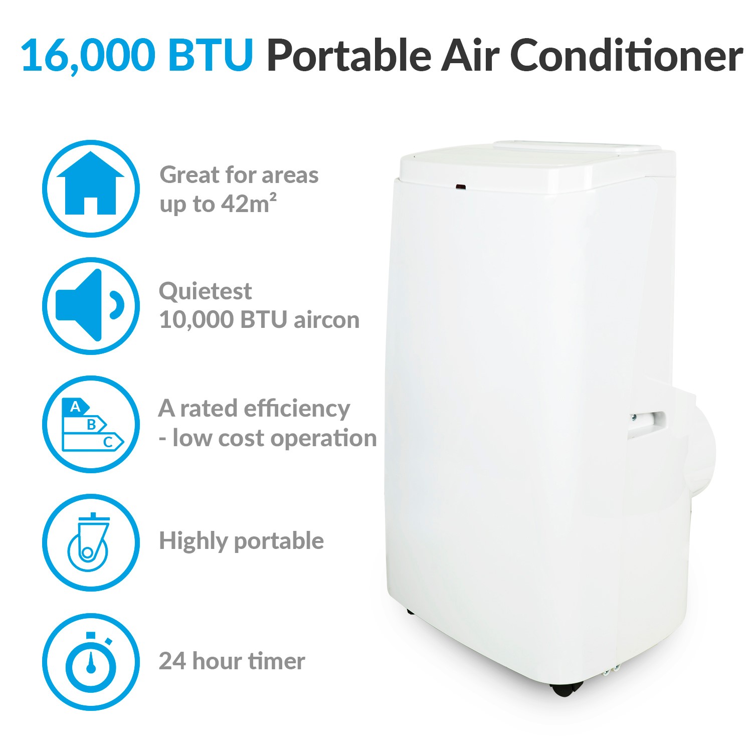 Some air conditioning systems are powerful yet noisy, while others are quiet but weak. The Silent16 Air Conditioner offers the best of both worlds delivering powerful cooling performance with less noise. Despite its portable proportions this air conditioner delivers cool fresh air for rooms up to 42 sqm. As well as offering powerful air conditioning, this energy efficient A rated model is packed full of useful features and is essentially a 3 in 1 unit - Air Conditioner, Dehumidifier and Fan.