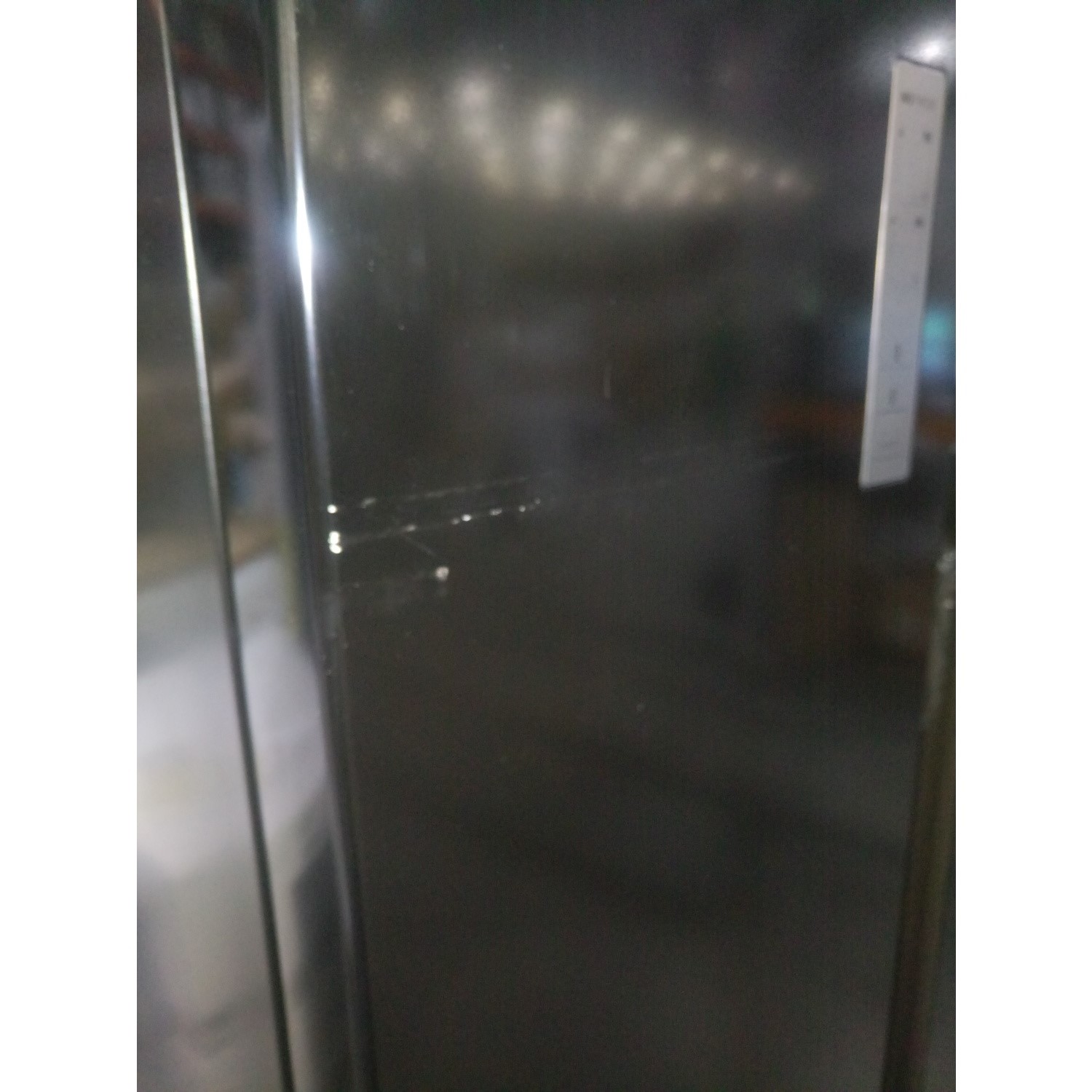 Both doors are scratched across the centre of the fridge freezer. The left and right hand side panels are scuffed and marked. Please see images for damage.
