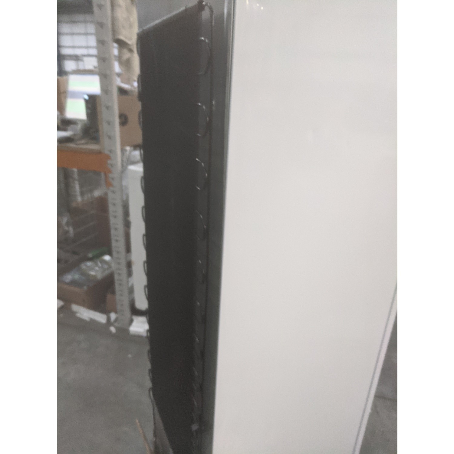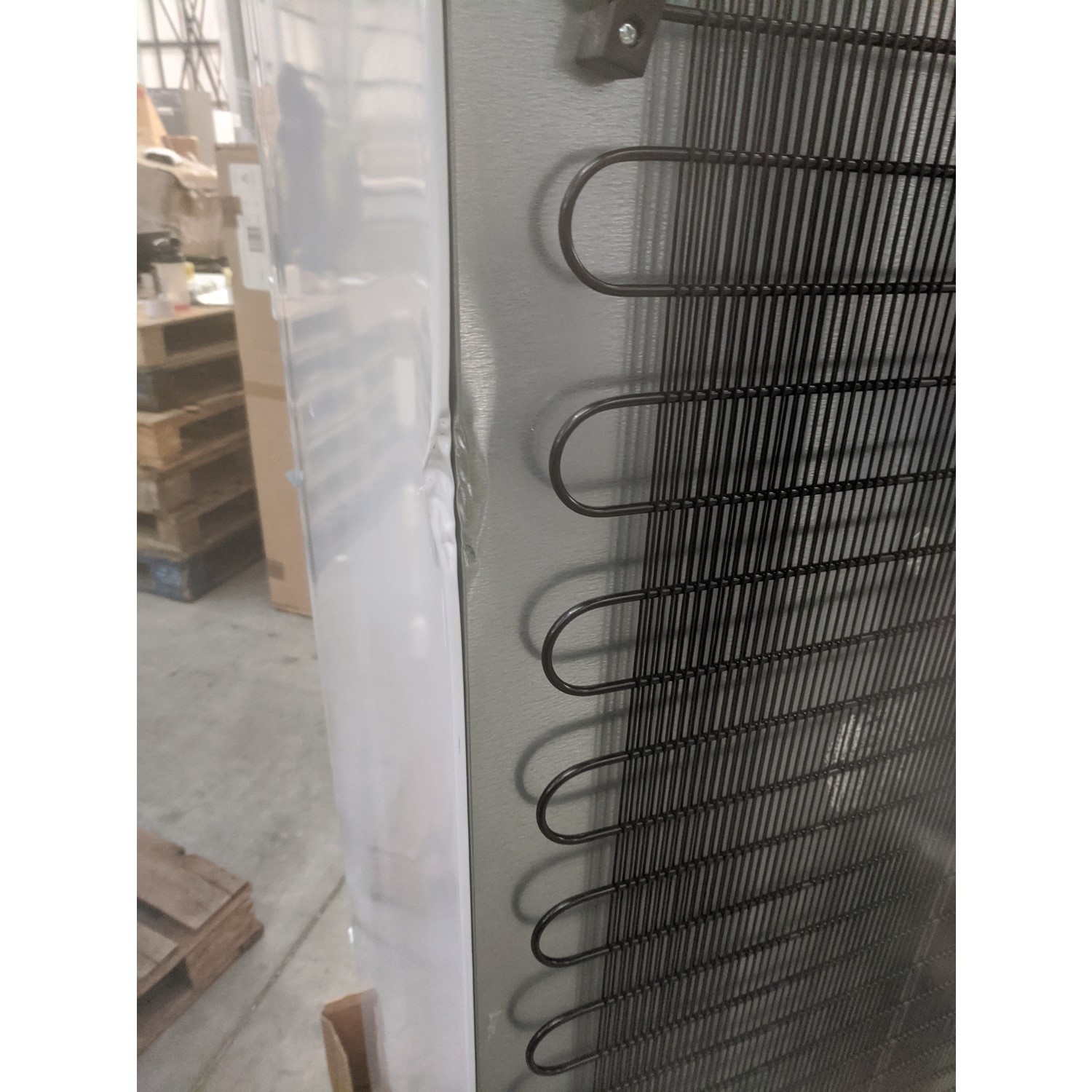There is a dent to the rear on the right hand side panel and on the back of the freezer. The metal grill is adrift from the back panel on the right hand side.