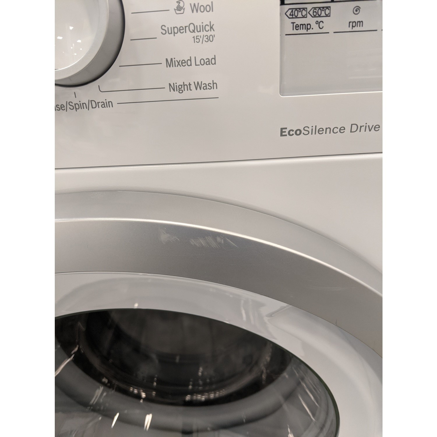 - Fully electronic control dial for wash programmes, temperature and special progammmes