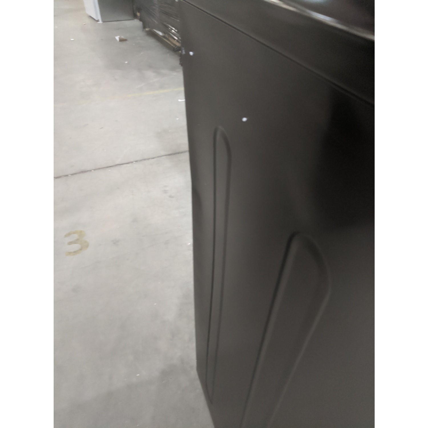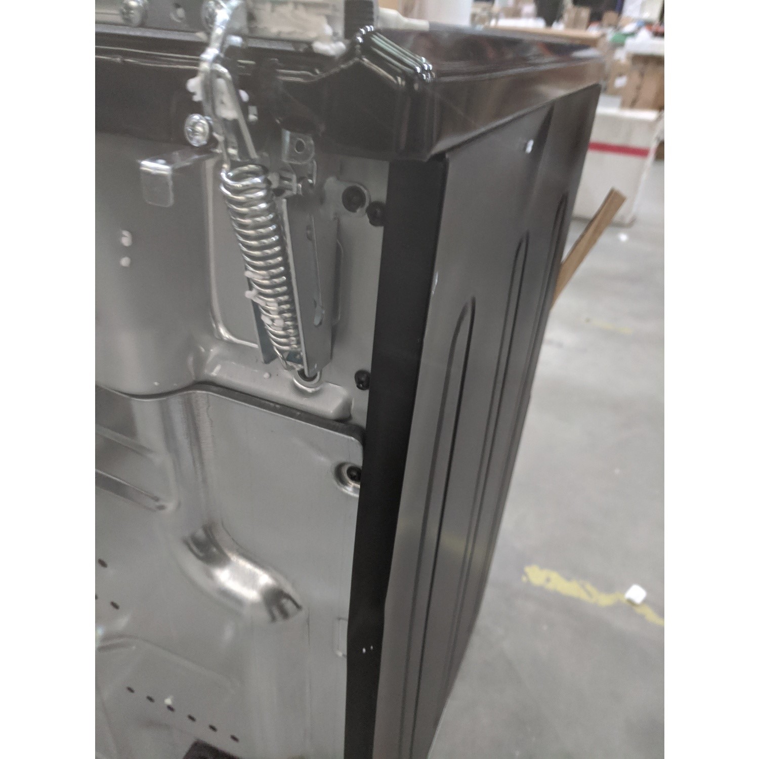 The left hand side panel has been squashed inwards and is dented at the top of the cooker at the rear.