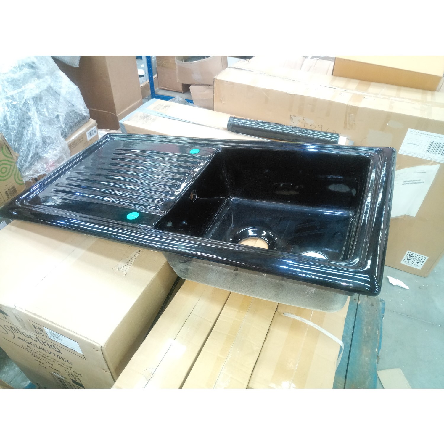 The RL404CB is a traditional single bowl black ceramic sink with drainer