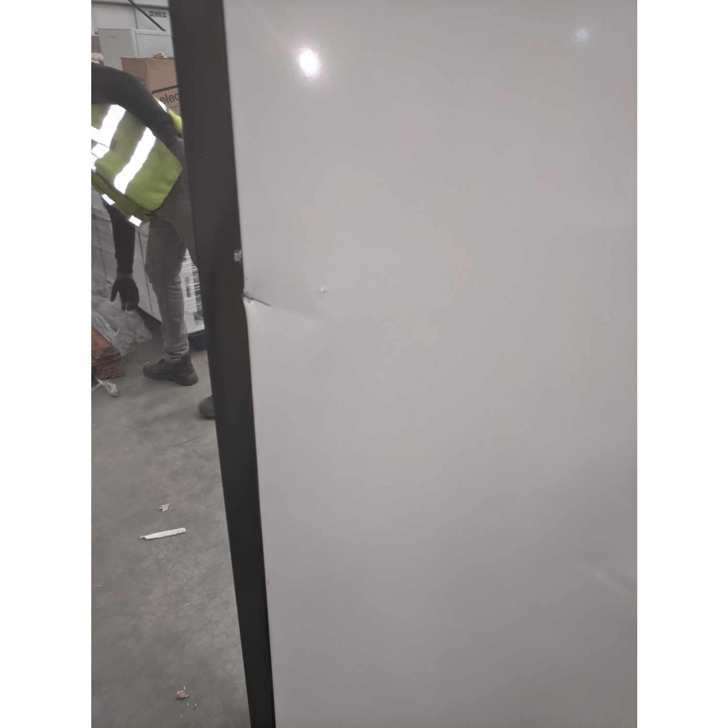 The paintwork on the door of the freezer is damaged to the top left and has two small dents to the base of the door. The left-hand side panel has a large dent to the rear and a smaller dent lower down the freezer. Please see images.