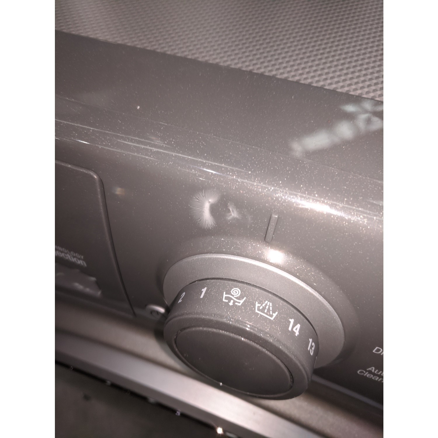 The control panel has had an impact to the centre of the dryer. The side panels are scratched. Please see images.