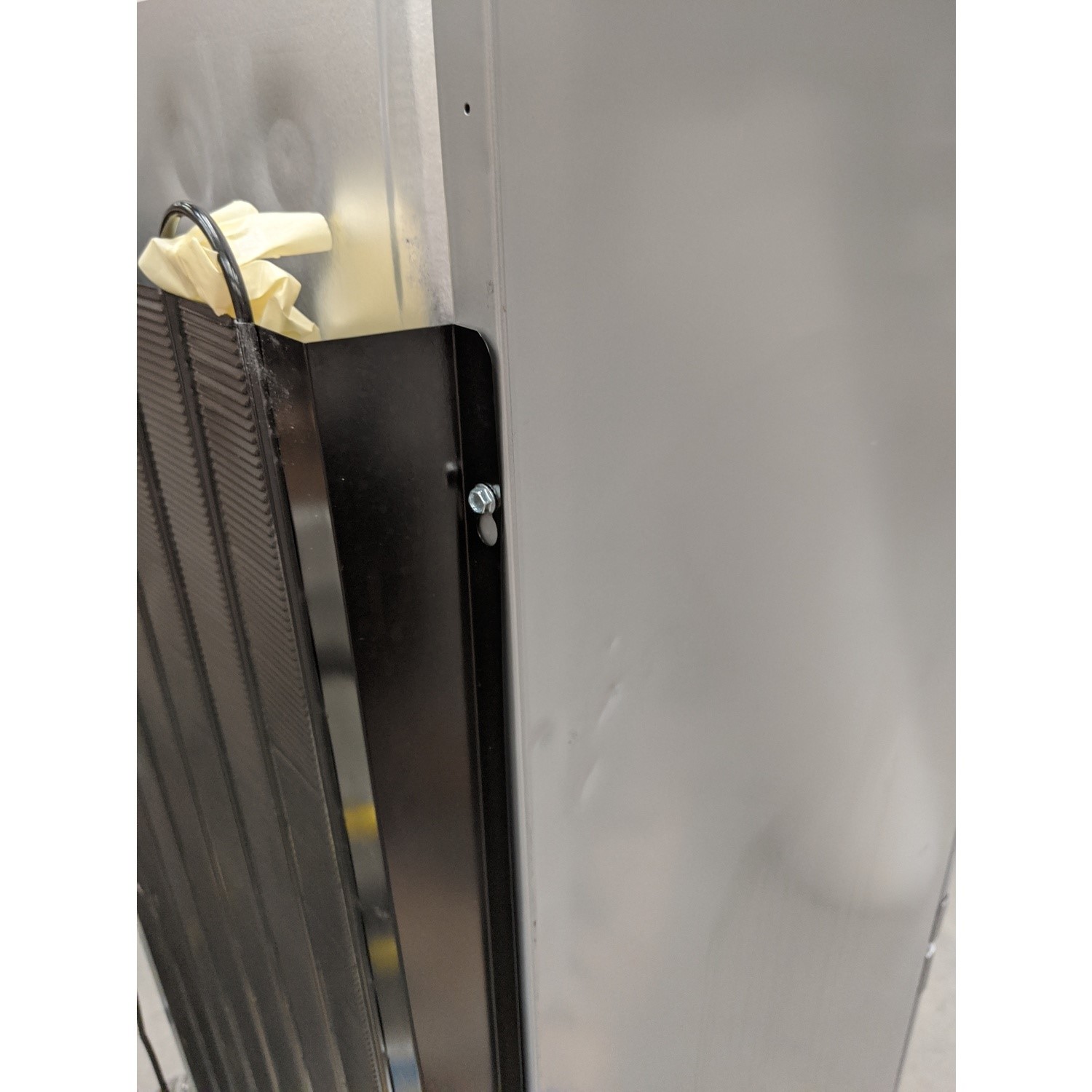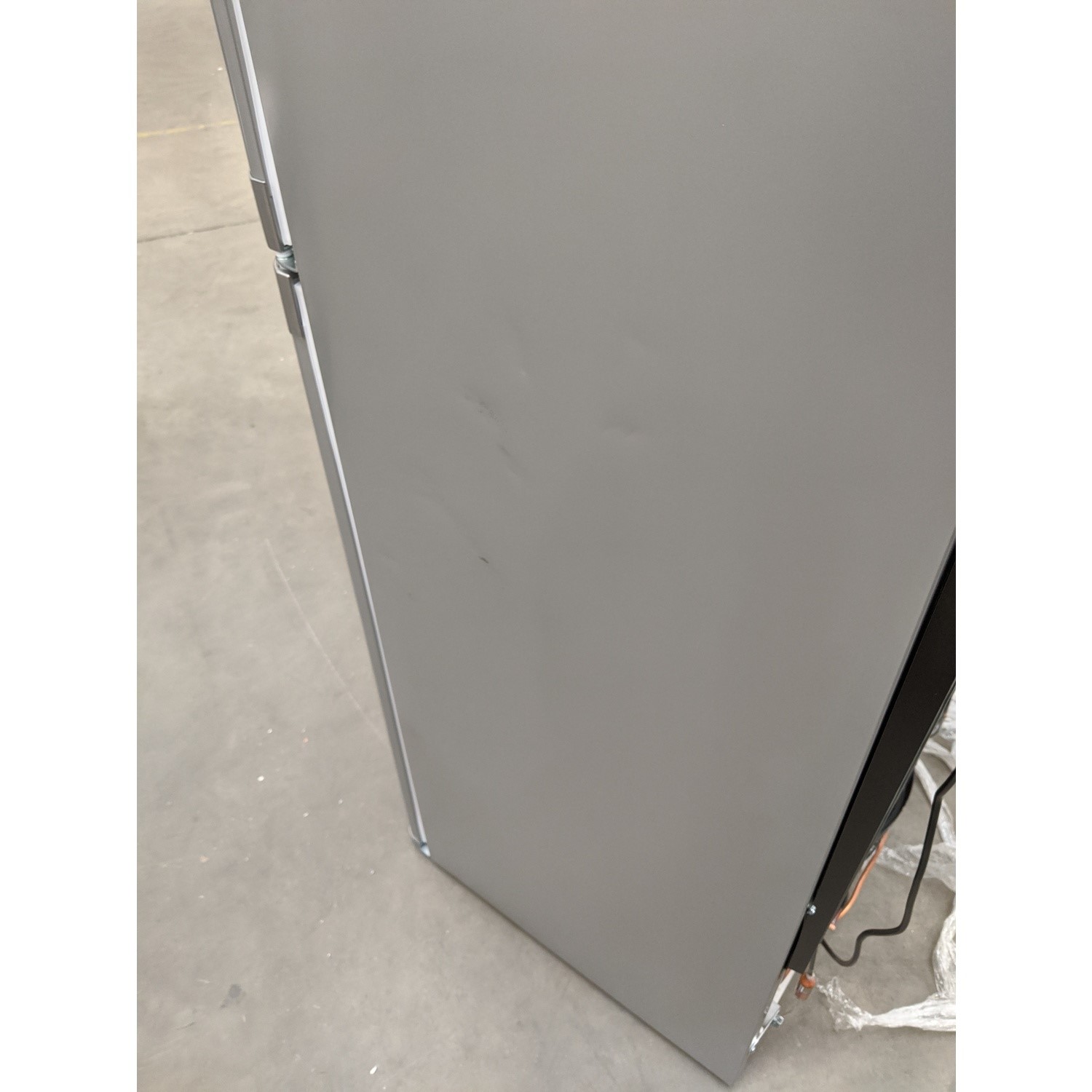 The top of the fridge freezer door is dented, along with the left and right-hand side panels. The unit has no feet making the unit unable to adjust. Please see images.