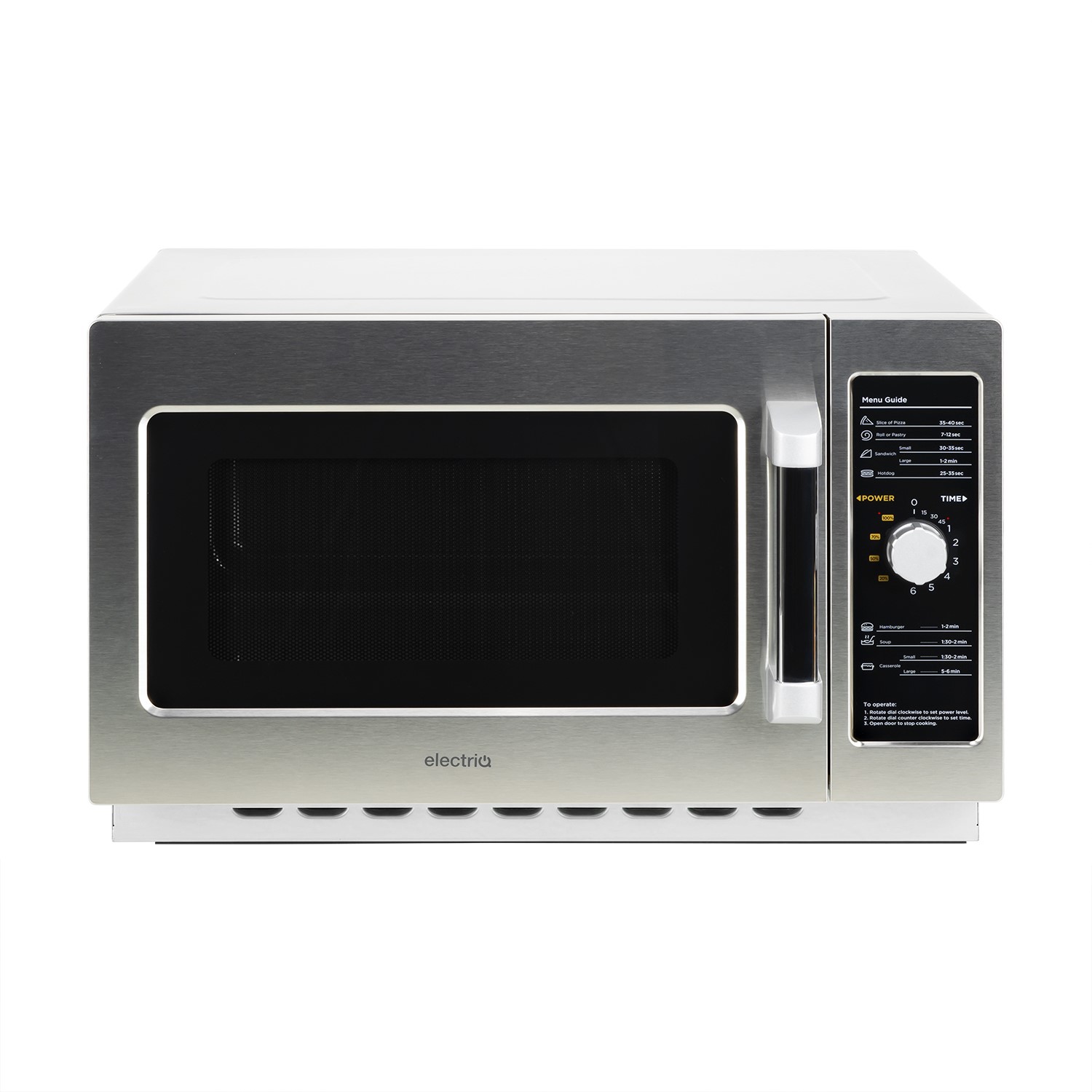 - Easy to use controls - rotate the dial anticlockwise to set the power level then clockwise to set the timer