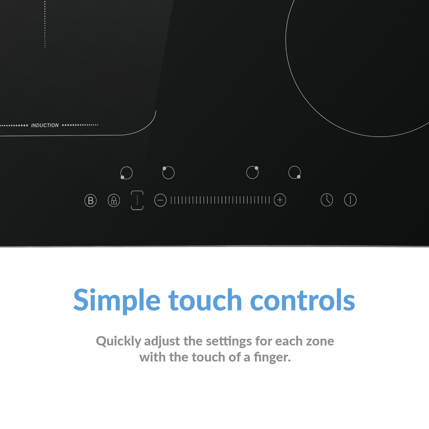- The touch controls give you quick and accurate temperature control of the nine power levels and hob settings
