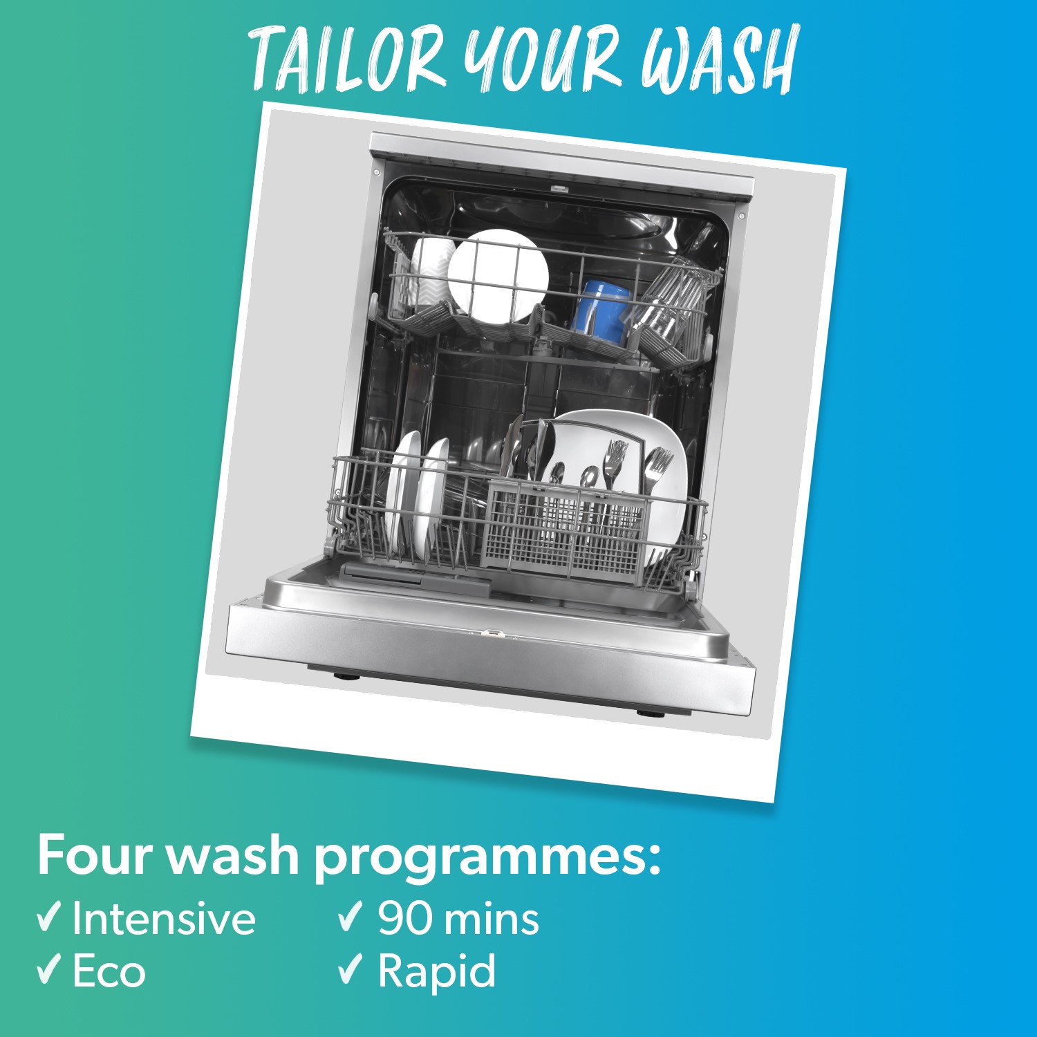 - There are four wash programmes to help you get the best results with each load