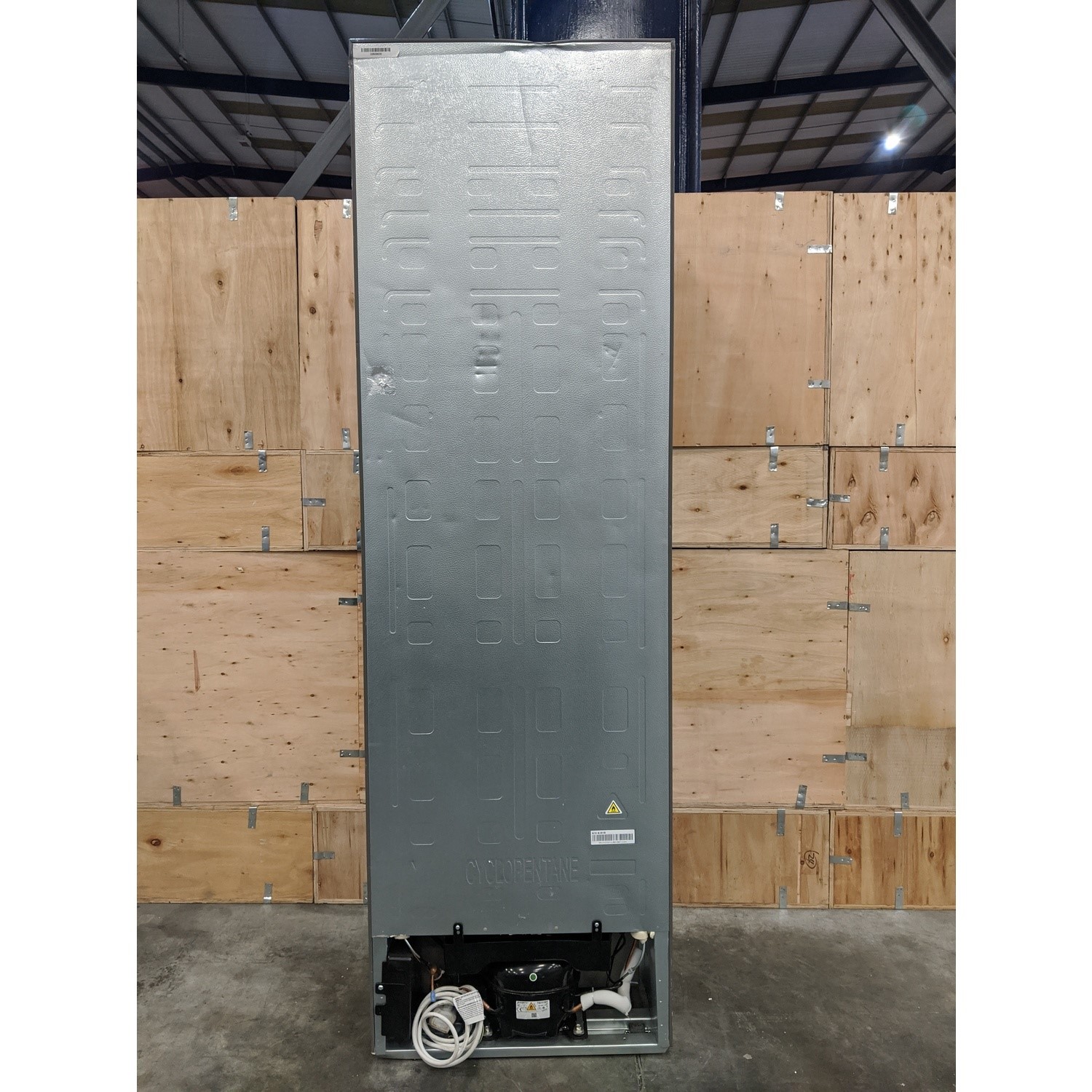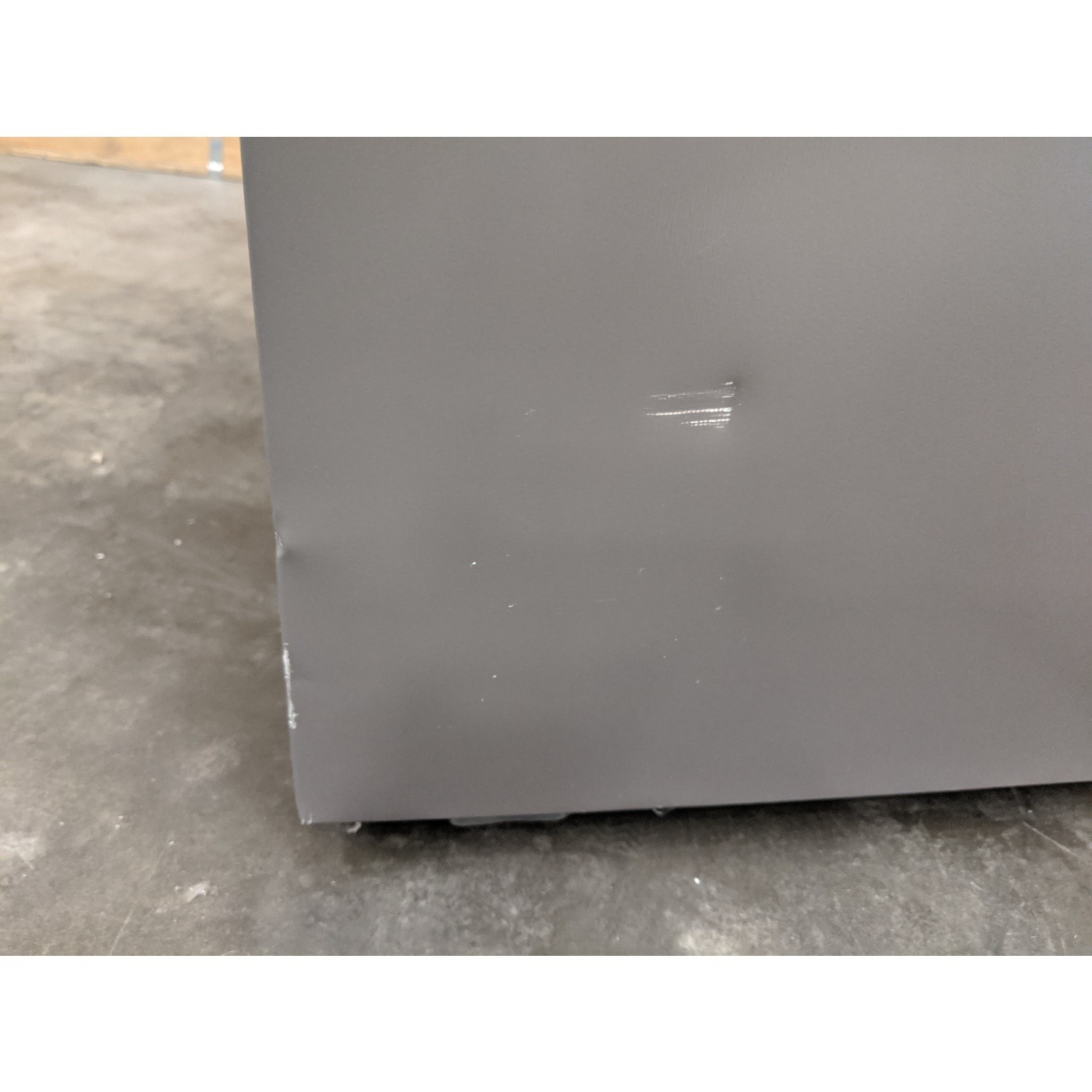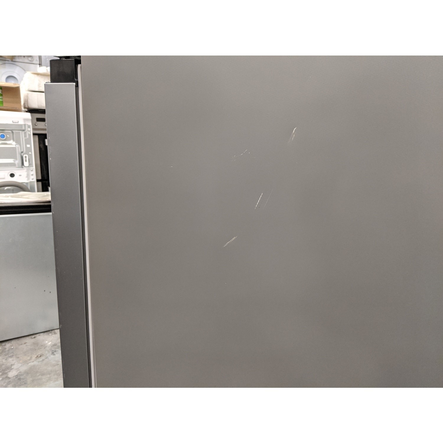 Product damage: Both doors front panels are dented and scratched, right panel scratched, top panel heavily dented centre back edge, rear panel dented and insulation broken, and the left panel is scratched
