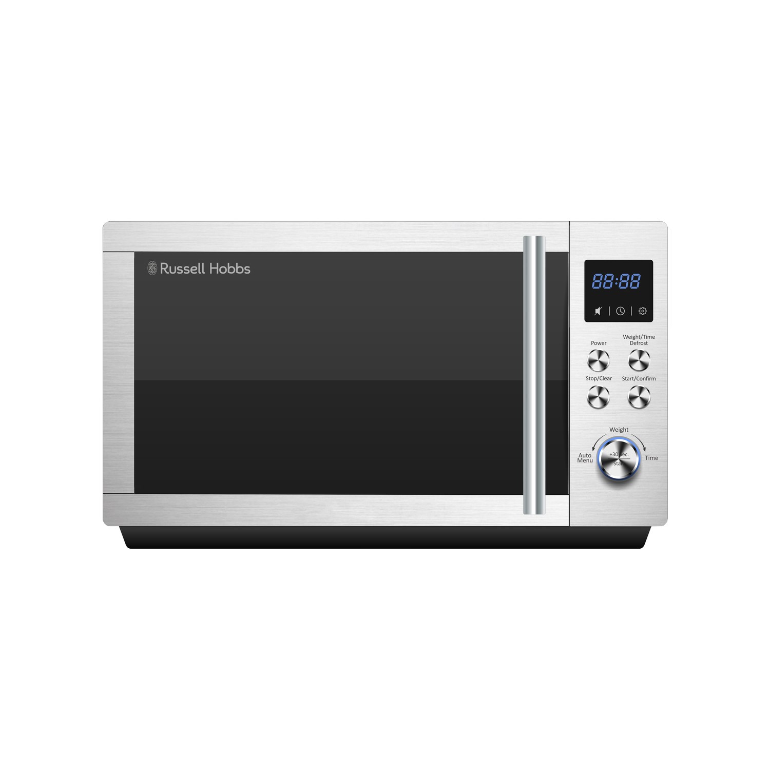 The Russell Hobbs RHM2086SS Buckingham microwave has a sleek and stylish contemporary design, boasting an attractive mirror door finish, stainless steel fascia and blue LED light. As well as an appealing look, this appliance also includes impressive functionality, with 700 watts of microwave power providing quick and convenient cooking in your home. The RHM2086SS from Russell Hobbs is a 17 litre cavity capacity microwave, comfortably fitting a standard size of dinner plate. It comes with a removable and dishwasher safe glass turn-table for easy cleaning. Pre-programmed auto cook menus, such as pizza (reheat), fish, and popcorn, allow you to cook all your favourite foods at the push of a button. What's more, there's automatic defrost settings meaning all you have to do is input the weight of the food, and the microwave selects the ideal defrost time, saving you time and effort. Moreover, 5 microwave power levels enable tailoring of your cooking experience. Additional features include a handy digital clock and count-down timer, and for added peace of mind, the RHM2086SS comes with a child safety lock option. Once the child lock is on, it locks the button control so the microwave cannot be activated.